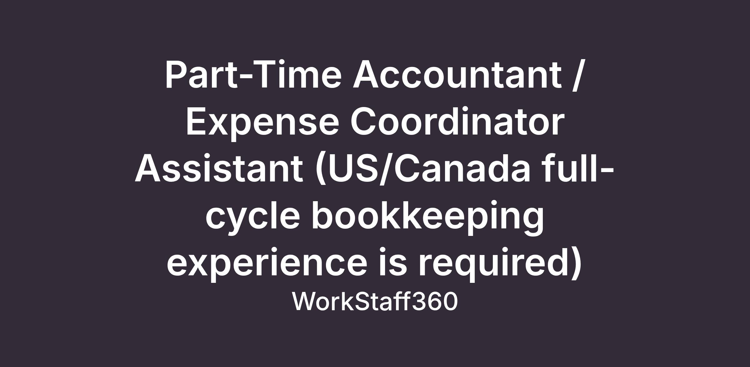 Part-Time Accountant / Expense Coordinator Assistant (US/Canada full-cycle bookkeeping experience is required)