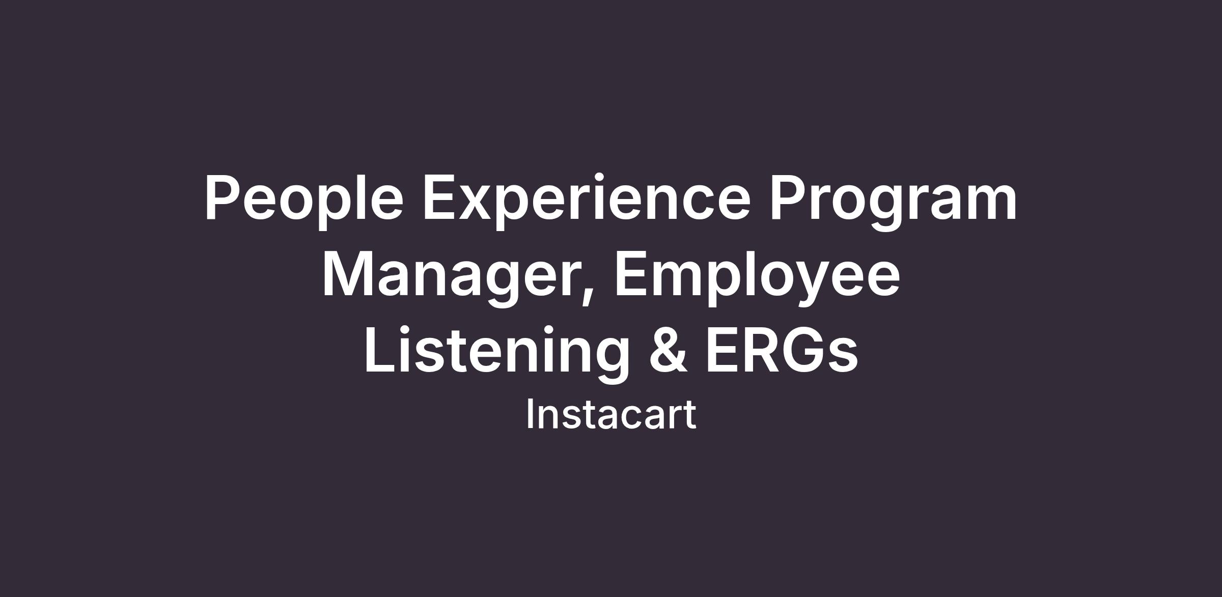 Our People Experience team contributes to Instacart's broader people strategy, which is a core component of how we grow the pie and go far together — two of our foundational values. You will be part of the People Experience team at Instacart, and will partner closely with the Executive sponsors, ERG leads, our Human Resources Business Partners, and People Team leadership to drive impactful programming across the company. You will also work closely with leaders across multiple functions: Talent Acquisition, Communications, Legal, People Operations, and People Analytics at Instacart as you navigate measuring impact, defining goals and vision, and draw meaningful insights from data to help us make Instacart a best place to work!
