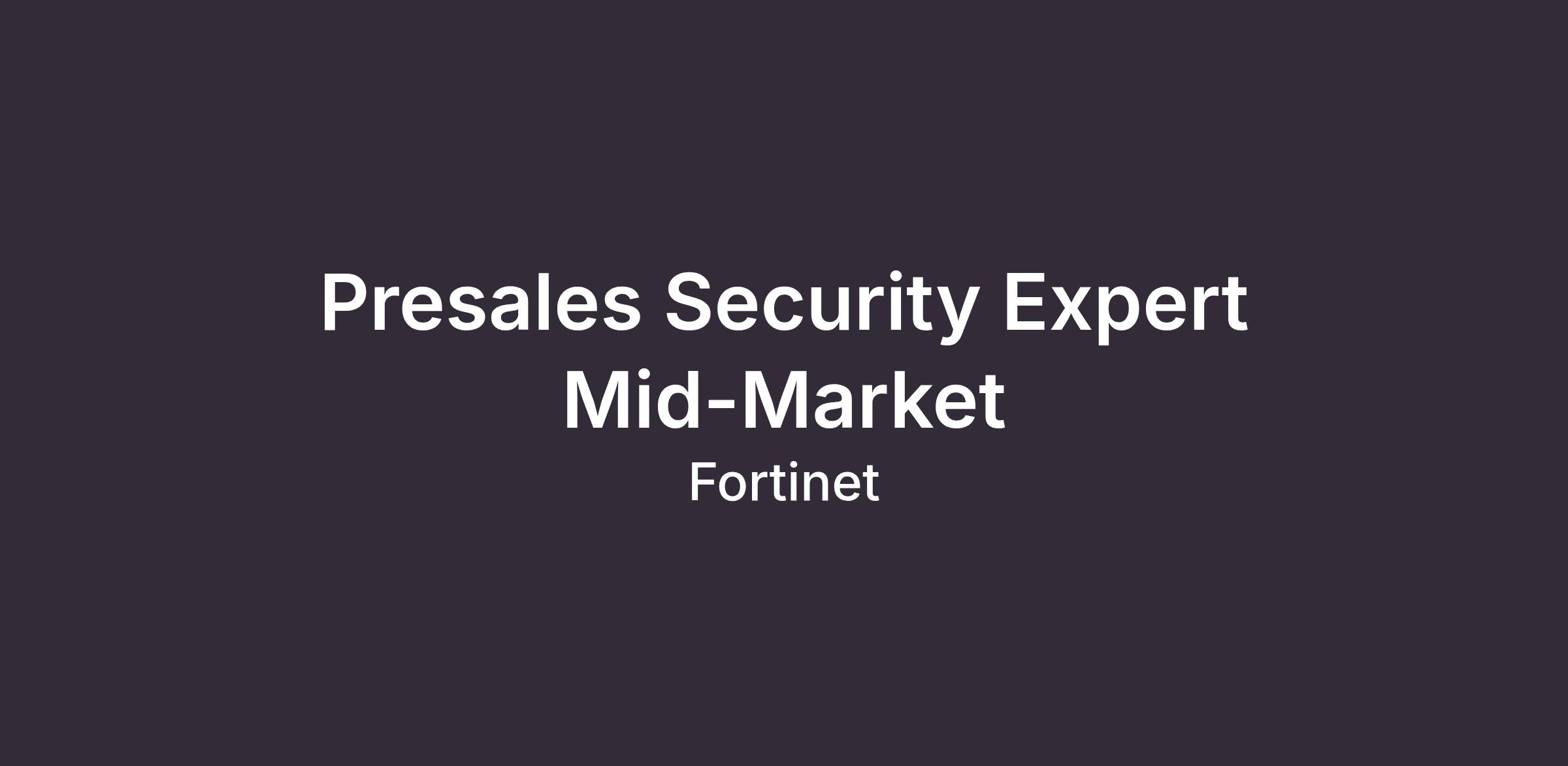 DescriptionJoin Fortinet, a cybersecurity pioneer with over two decades of excellence, as we continue to shape the future of cybersecurity and redefine the intersection of networking and security. At Fortinet, our mission is to safeguard people, devices, and data everywhere. We are currently seeking a dynamic Presales Security Expert Mid-Market to be a part of enabling the success of our rapidly growing business