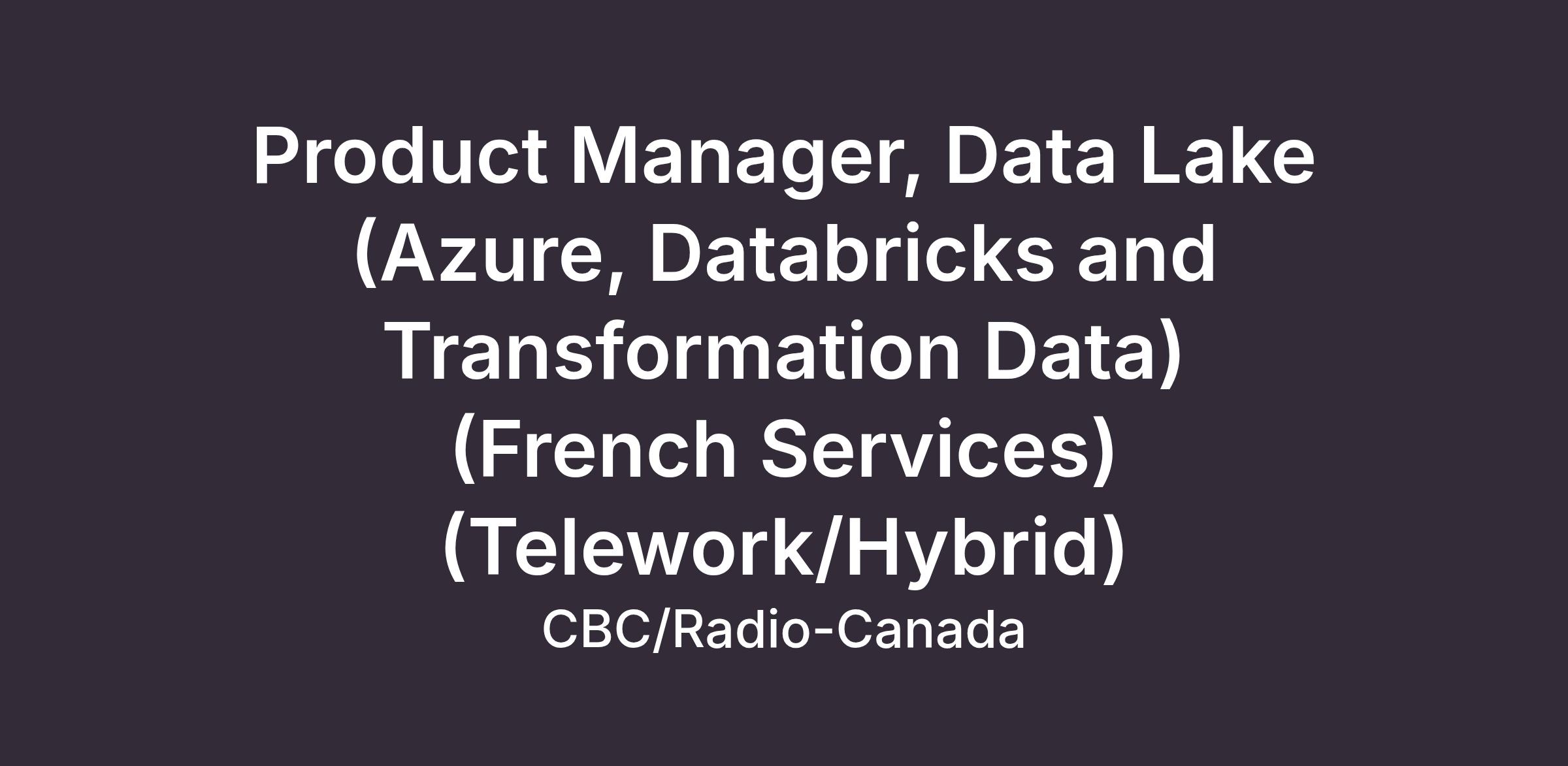 Product Manager, Data Lake (Azure, Databricks and Transformation Data) (French Services) (Telework/Hybrid)Status of Employment: