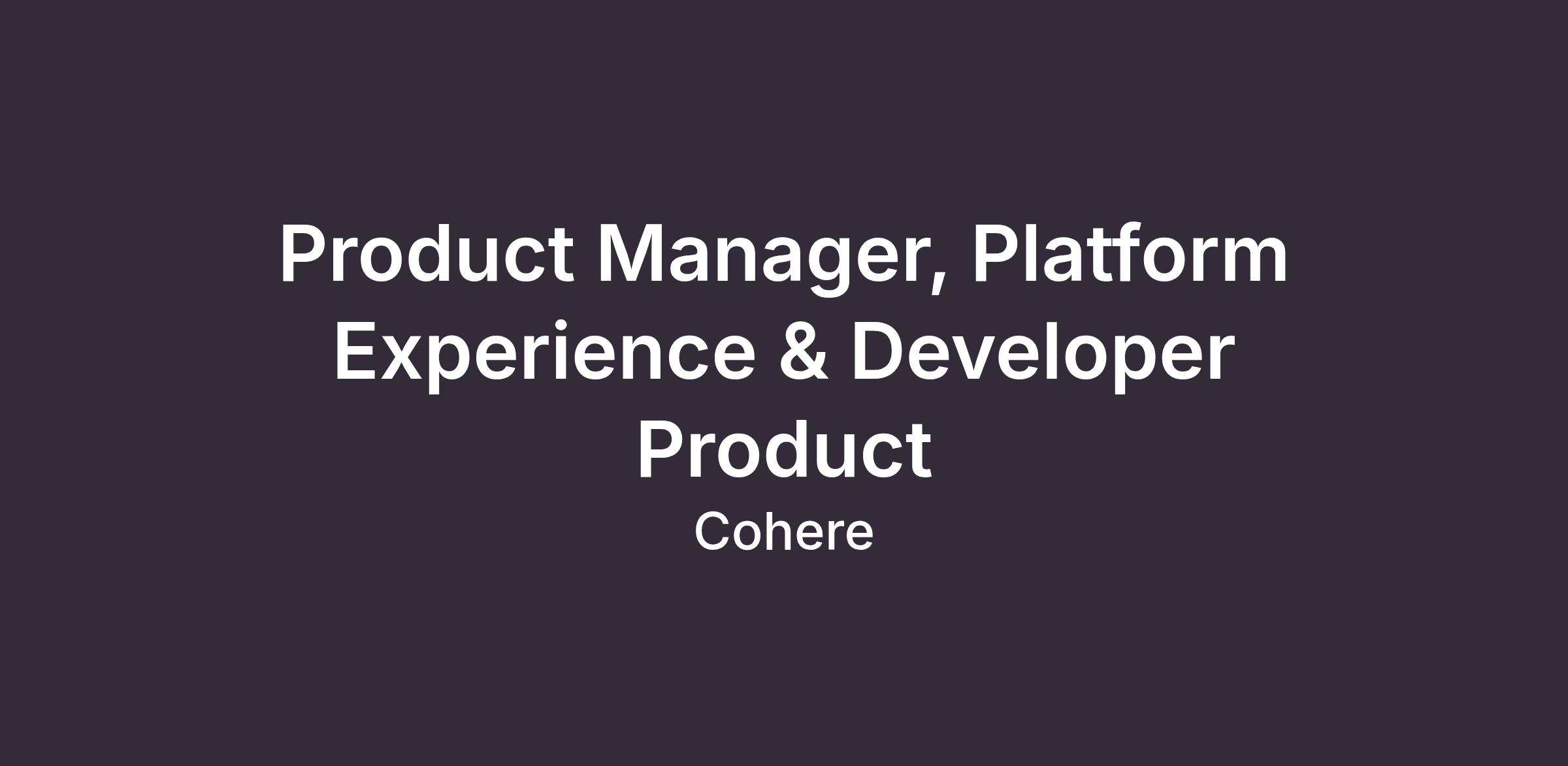 We are seeking a Platform Experience and Developer PM to own how developers and enterprise technical teams build on, integrate with, and operate Cohere's model platform.
