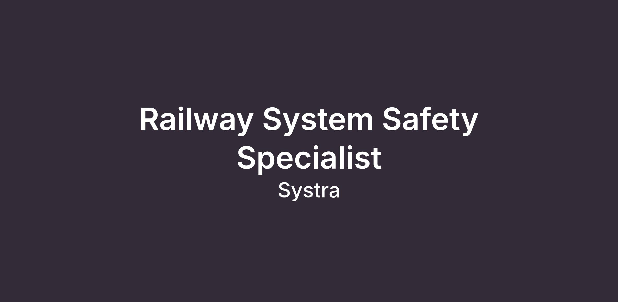 Years of experience: 5+ years of relevant experience conducting system safety studies. Experience in railways, tramways, metros, or railway infrastructure projects is an asset.