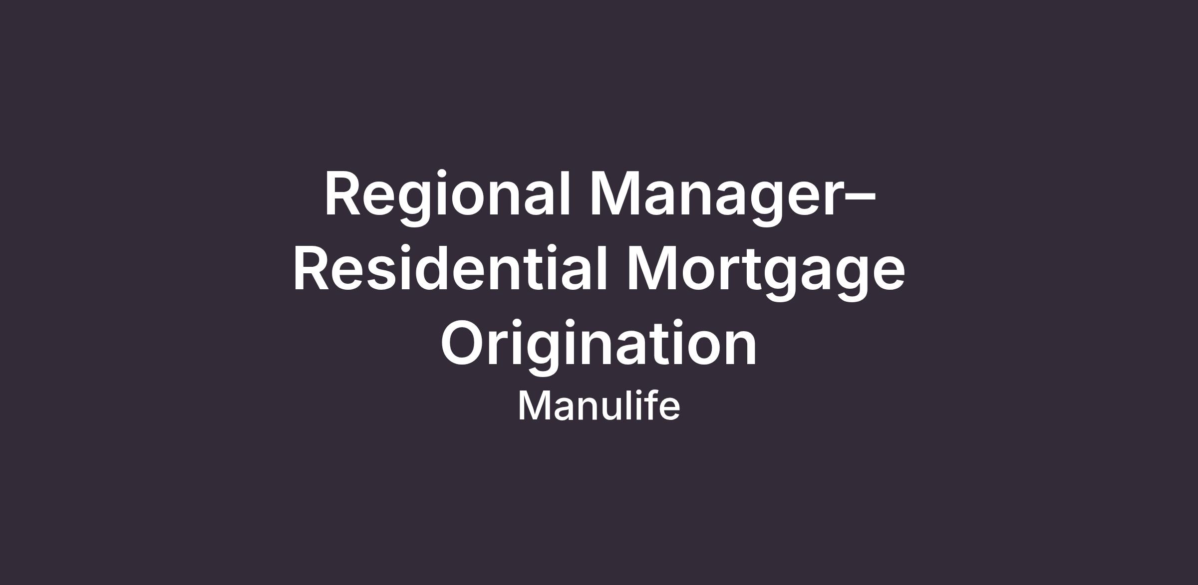The Regional Manager, Underwriting Services, plays a critical leadership role in supporting Manulife Bank’s residential mortgage origination business. Reporting to the Director, Underwriting Strategy & Operations, this role is accountable for the end-to-end performance of mortgage origination activities within an assigned region.