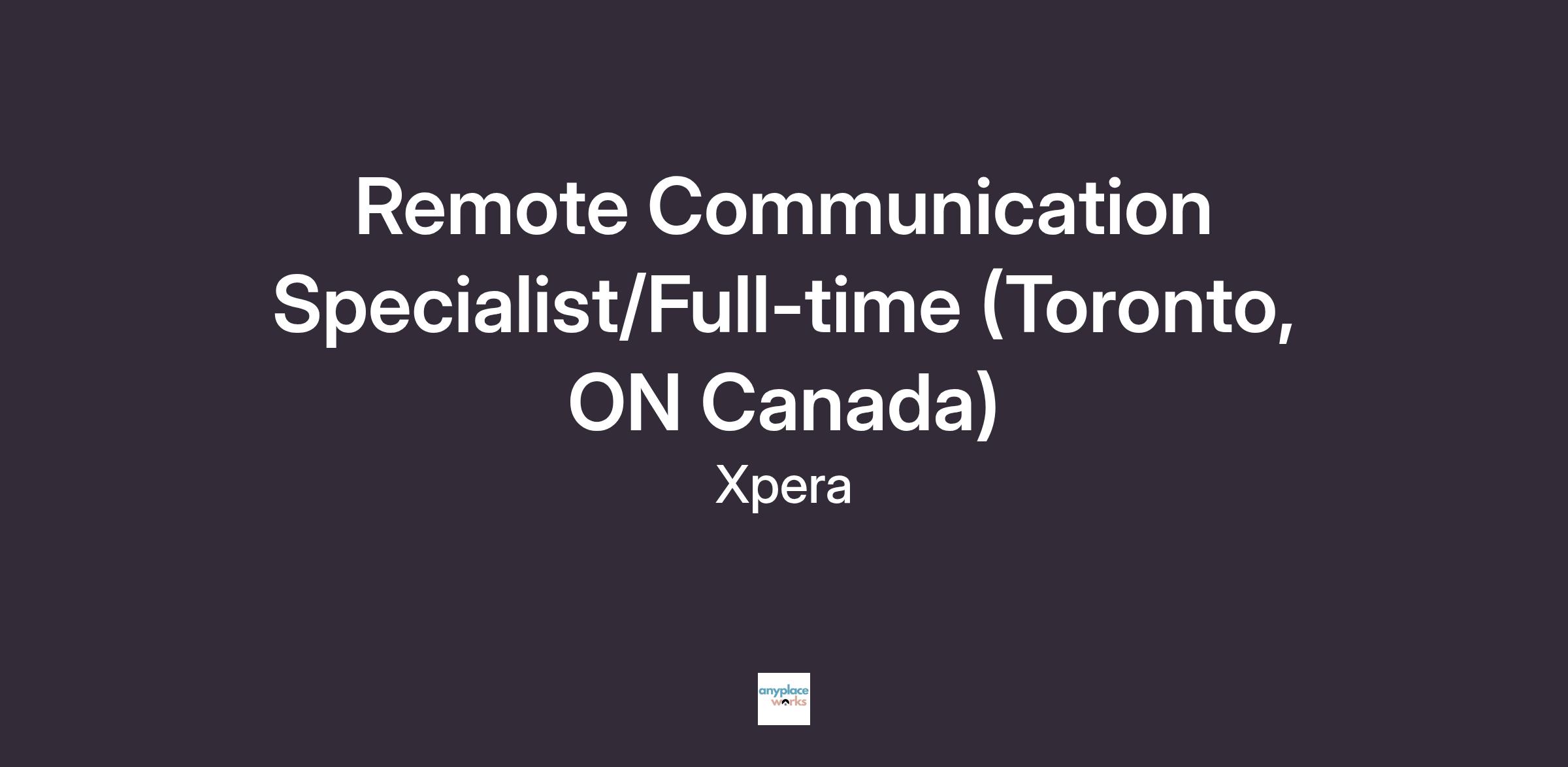 Remote Communication Specialist/Full-time (Toronto, ON Canada)
