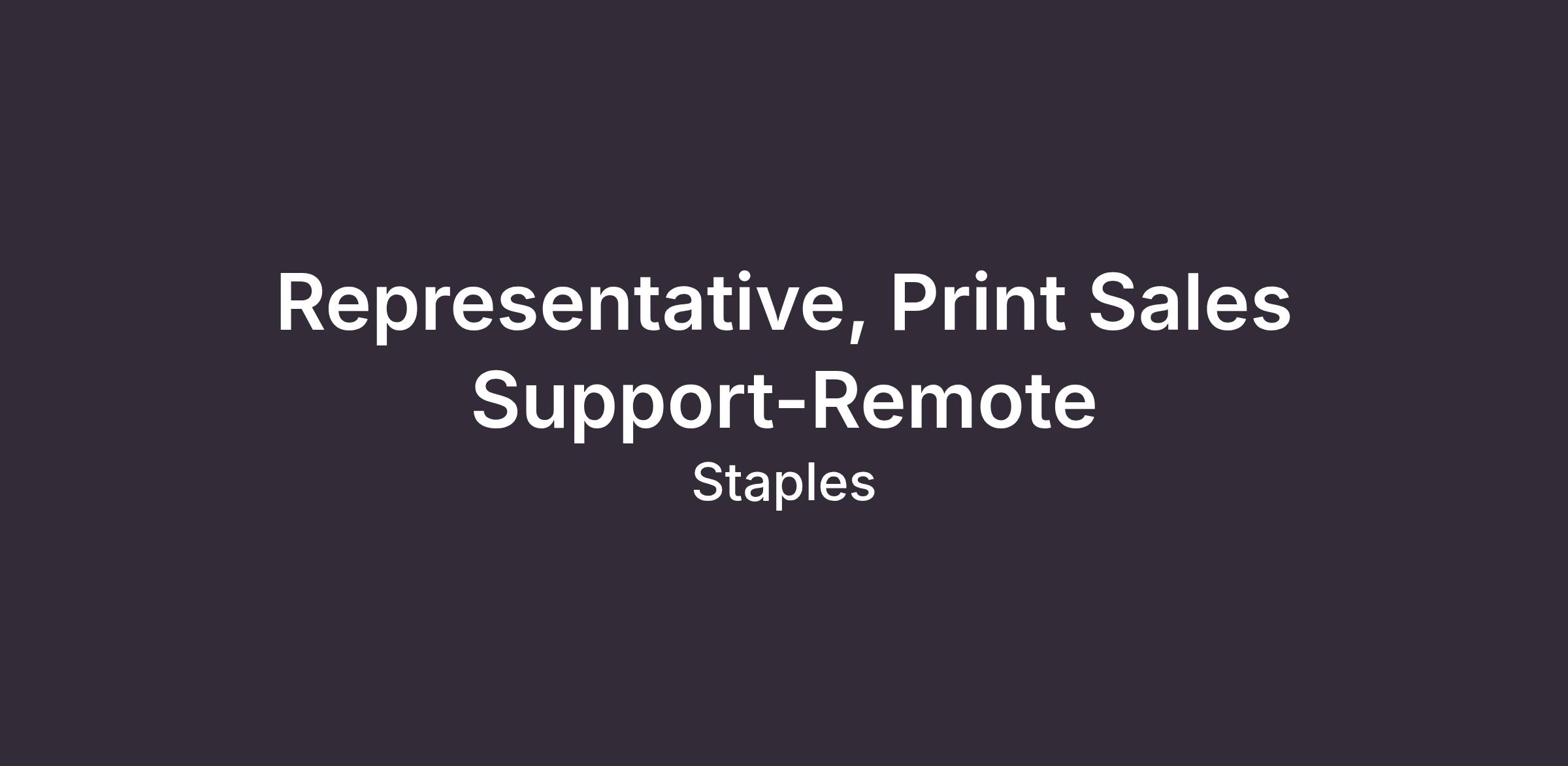 The Representative, Print Sales Support, manages the intake and quoting of print business referrals submitted online, Staples Canada store teams and Staples Professional. This role ensures prompt and accurate quoting, qualifies leads for routing to the print sales teams, and helps create a smooth customer experience. This position is critical in driving revenue growth, improving operational efficiency, and enhancing customer satisfaction through timely and professional support. The Representative is a key liaison between store teams and sales, ensuring that every referral is handled precisely and carefully.