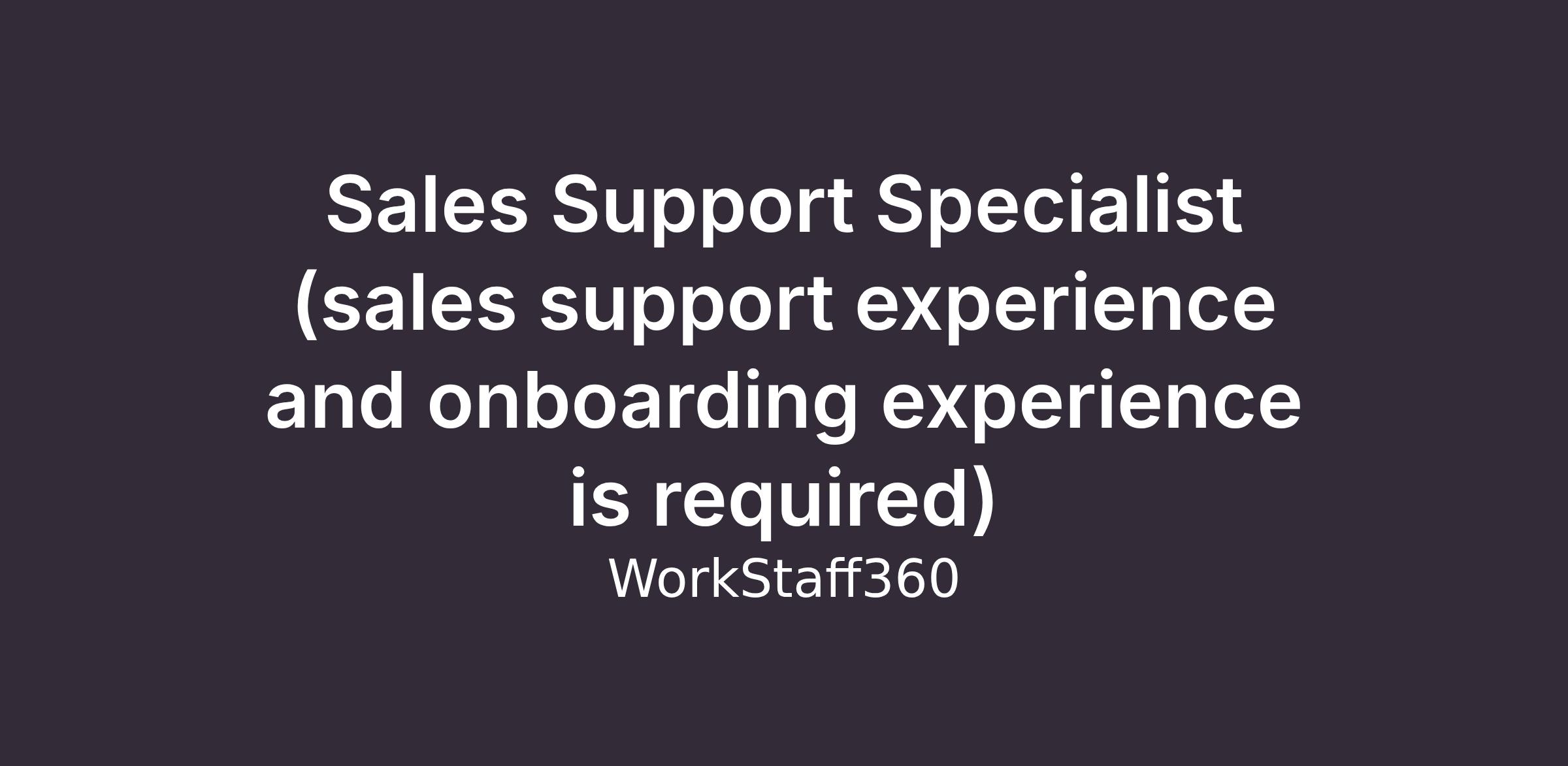 Sales Support Specialist (sales support experience and onboarding experience is required)