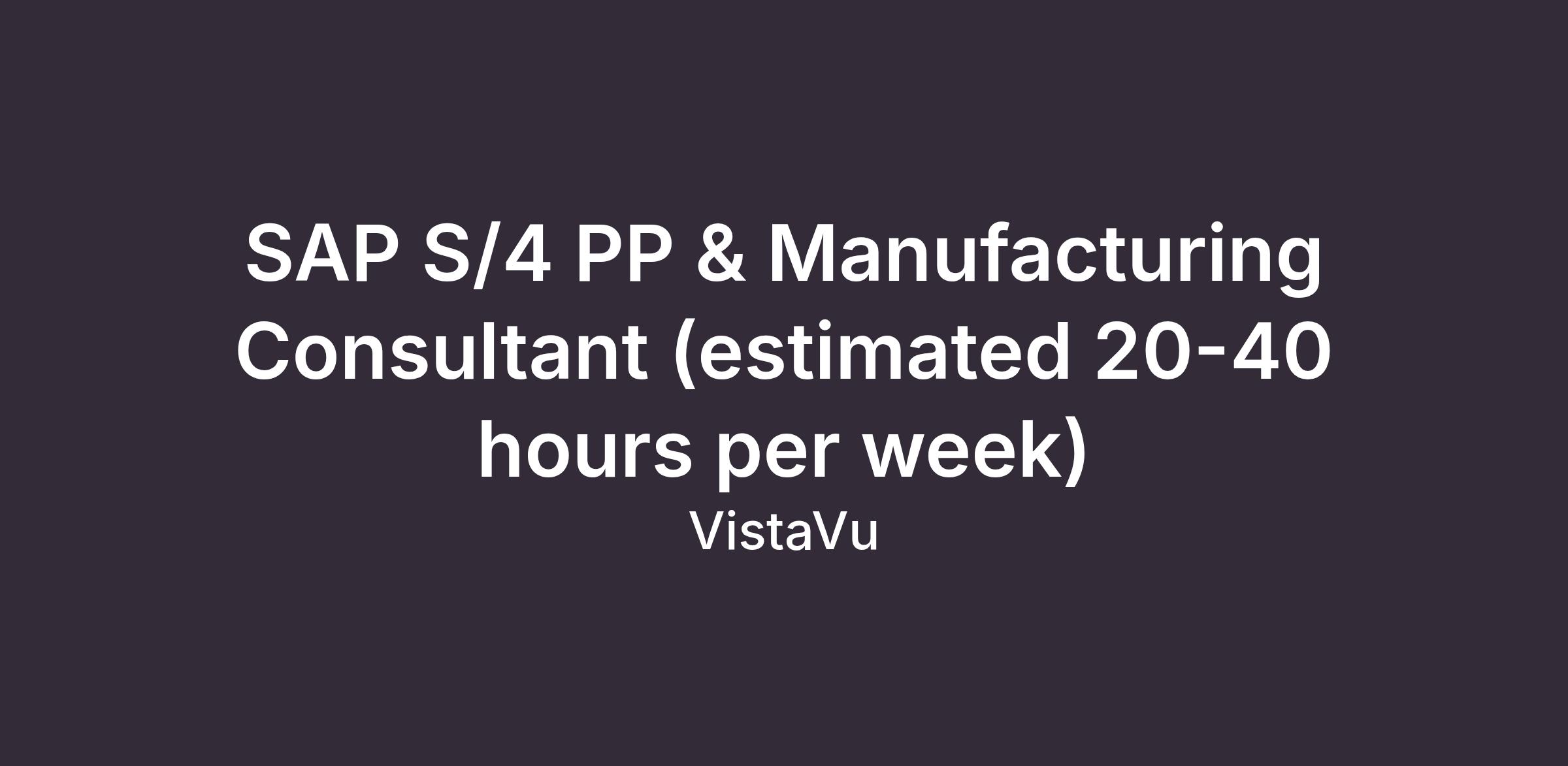 VistaVu is looking for a seasoned Consultant to join our dynamic S/4Hana Cloud Public Team as an SAP PP & Manufacturing Consultant. This opportunity is worth considering if you are looking for a rapidly growing business and an exciting workplace. The successful candidate will be responsible for creating and implementing SAP-based ERP solutions, overseeing the analysis and design of the SAP Manufacturing/R&D area and collaborating closely with the client's manufacturing team and conducting thorough internal and user testing to ensure that the solution is stable and can be continuously improved.