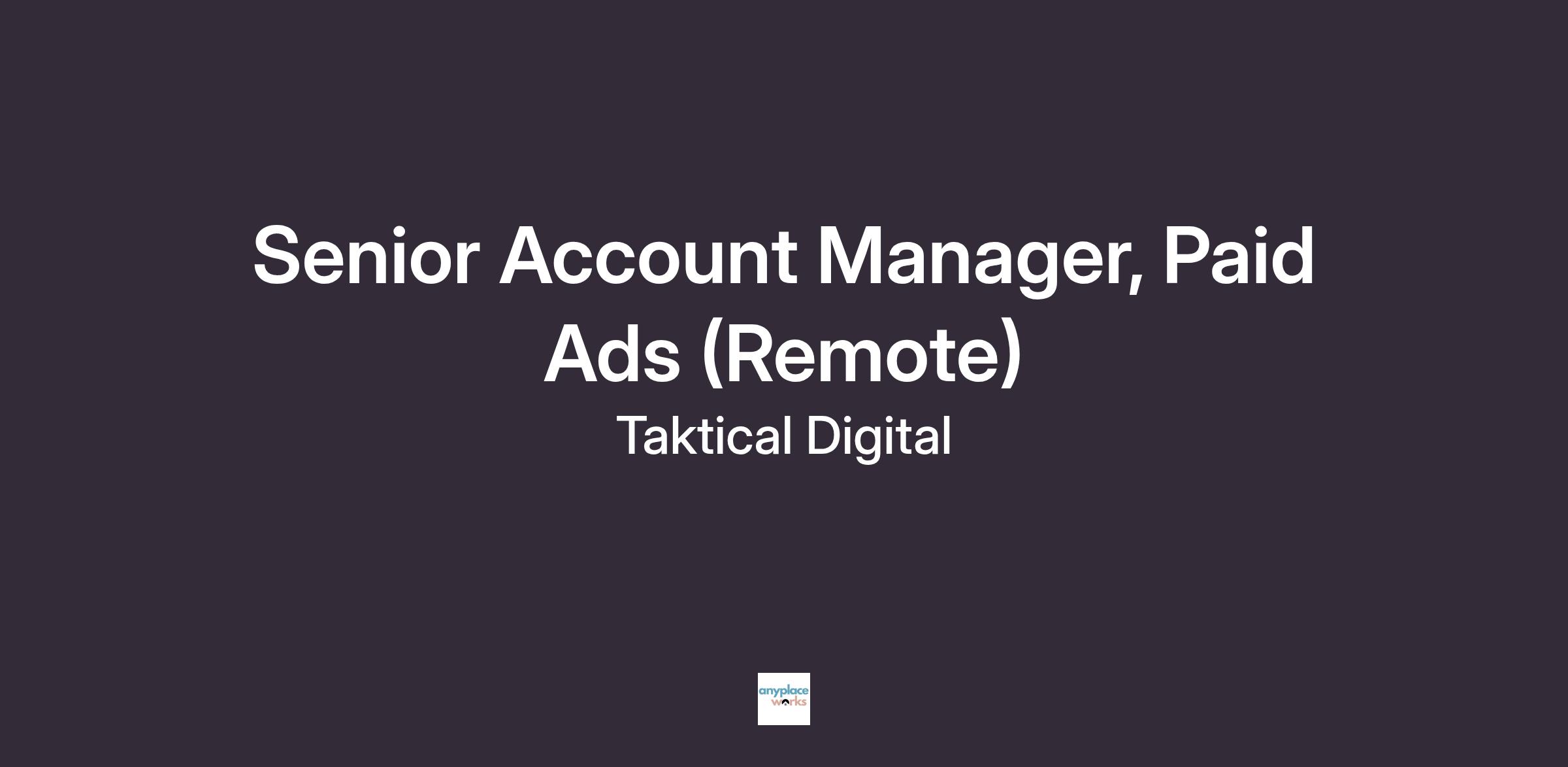 Taktical’s Senior Account Managers play a vital role in our digital marketing efforts. This position is responsible for managing and nurturing client relationships, ensuring the successful execution of paid media campaigns, and driving growth in client portfolios.
