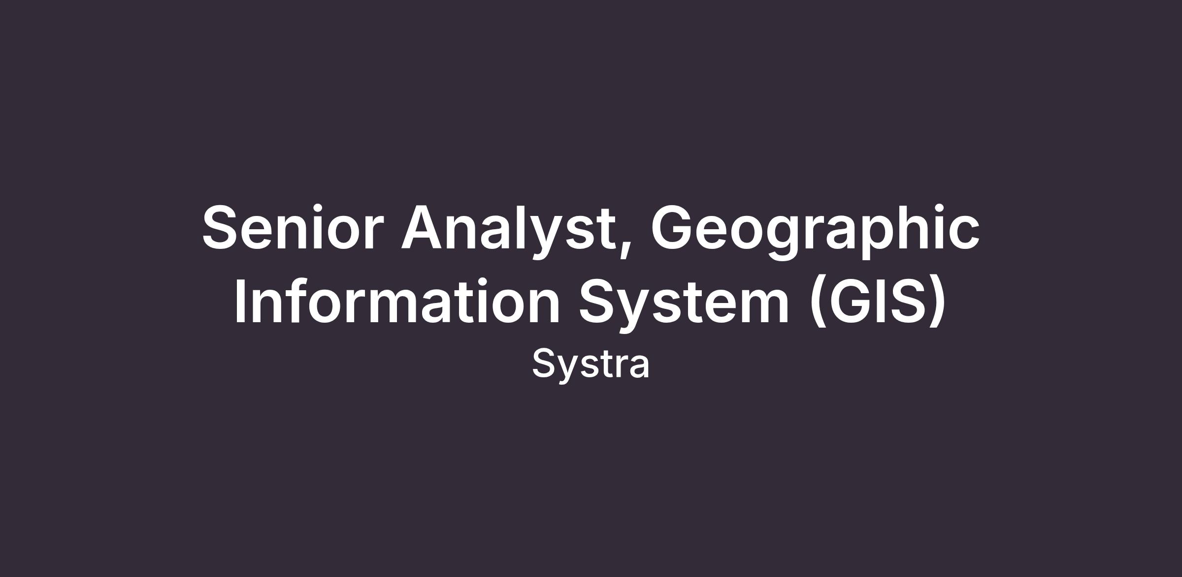 Education: Bachelor’s or Master’s degree in Geographic Information Systems (GIS), geography, urban planning, or a related field.