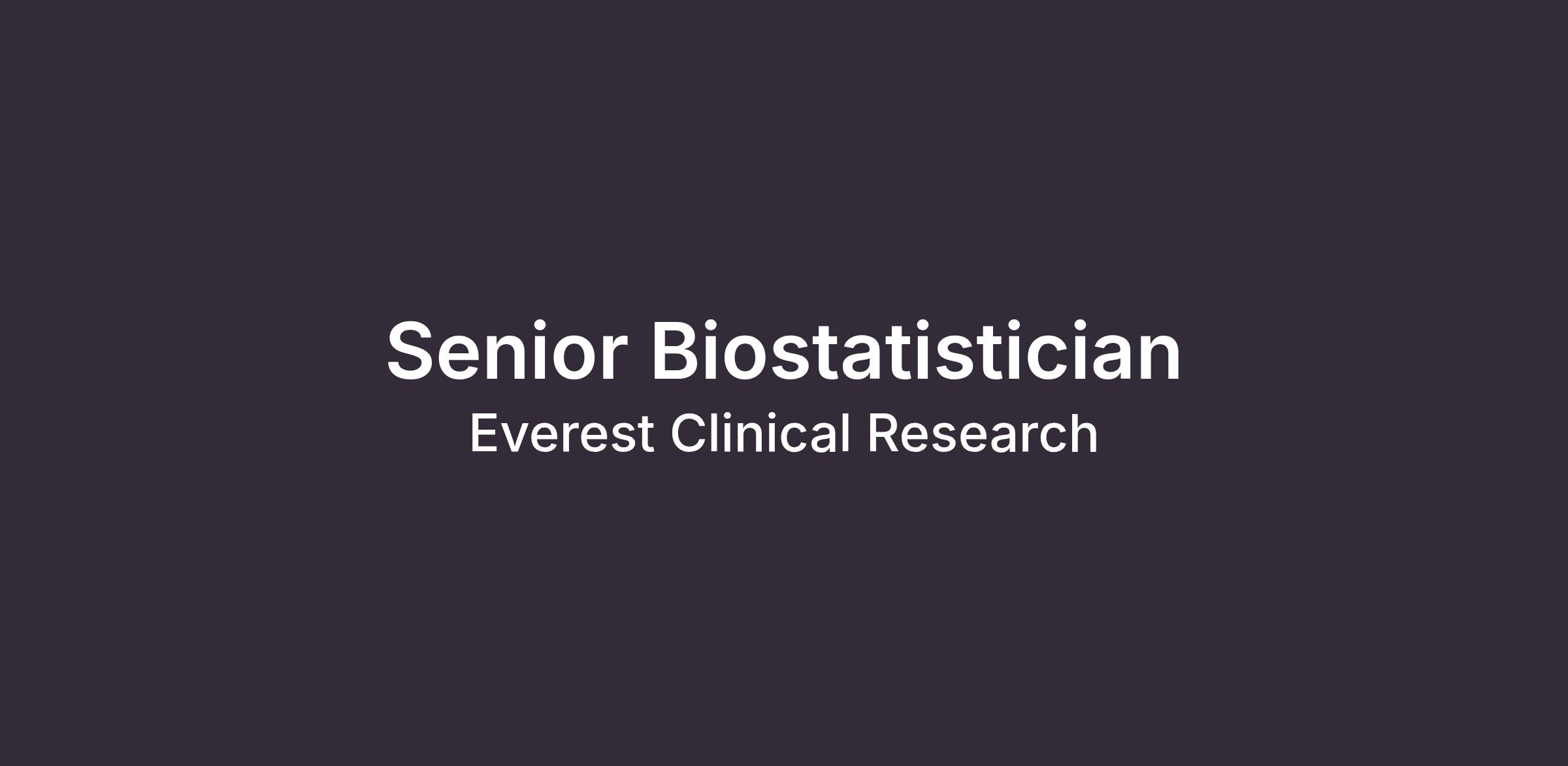 To drive continued success in this exciting clinical research field, we are seeking committed, skilled, and customer-focused individuals to join our winning team as Senior Biostatisticians for our Markham, Ontario on-site location, or remotely from a home-based office anywhere in Canada in accordance with our Work from Home policy.