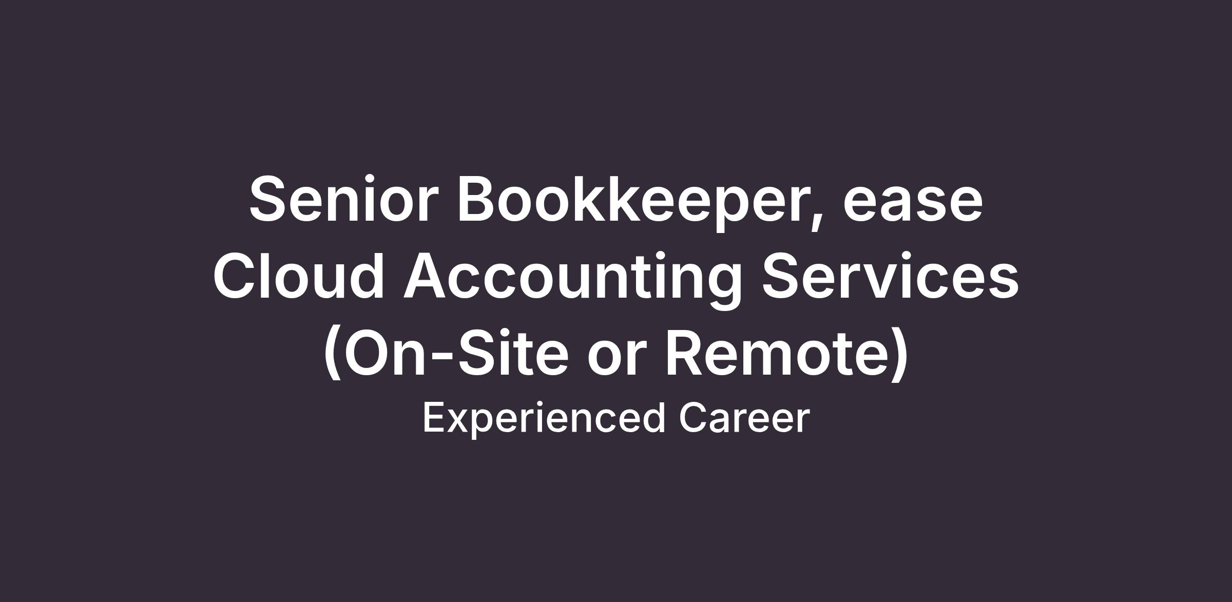 Make an impact with our ease Cloud Accounting Services team as a Senior Bookkeeper. This diverse team of professionals are dedicated to exceeding clients’ unique needs within a rapidly evolving business and financial reporting landscape. As a trusted advisor, you’ll use cutting-edge technology to deliver a full suite of services, including accounts payable, accounts receivable, bookkeeping, financial reporting and payroll administration.