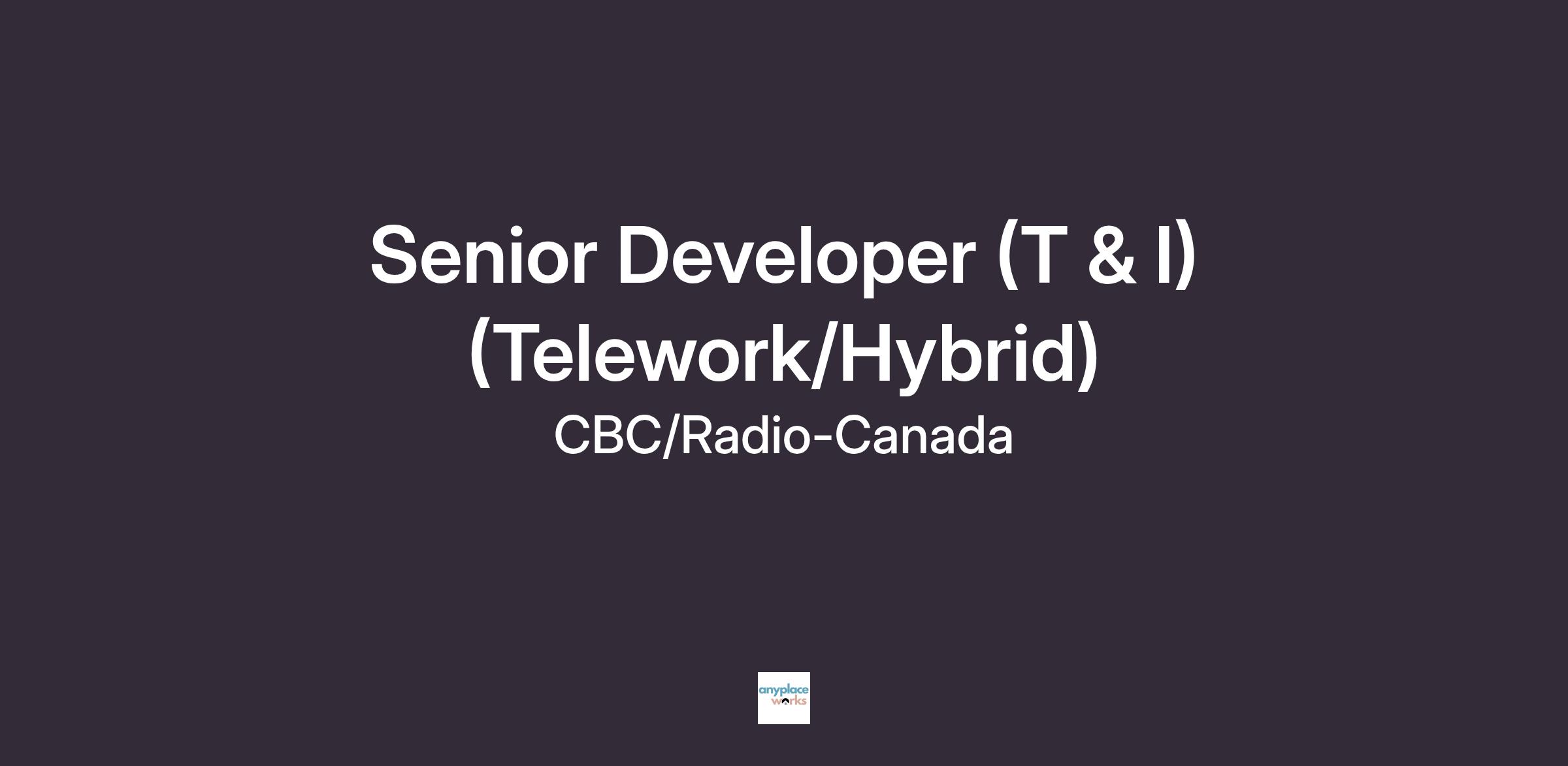 Senior Developer (T & I) (Telework/Hybrid)Status of Employment: