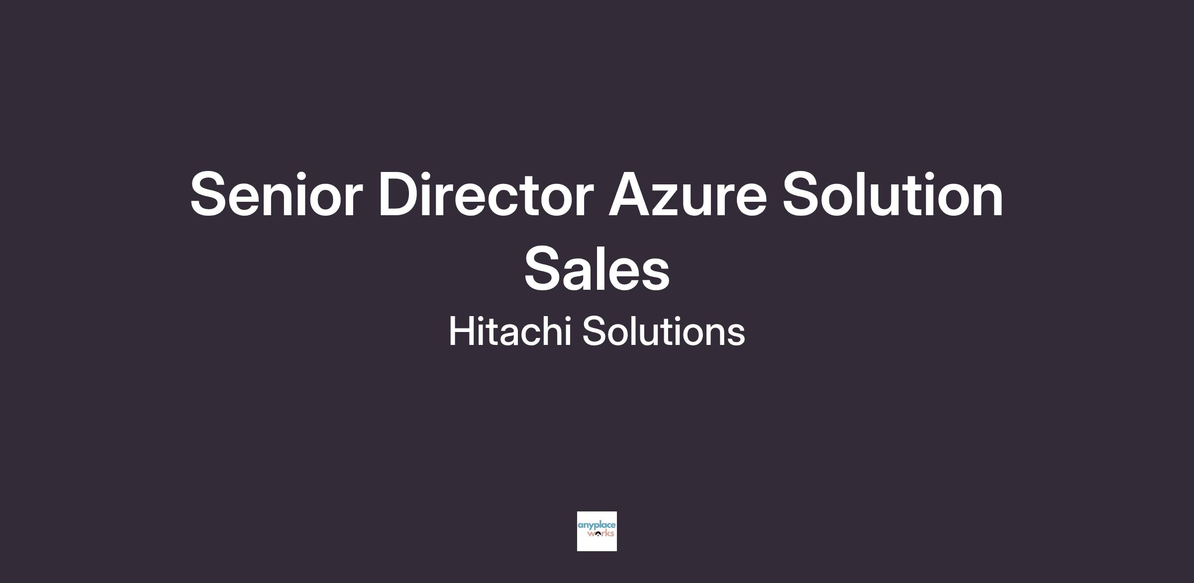 Hitachi Solutions is seeking a visionary Senior Director of Solutions Sales and Strategy to architect and drive our Azure practice across North America. This strategic leader will be accountable for both our solution sales execution and our Azure solutions portfolio, ensuring we maximize customer value from the entire Azure ecosystem while delivering exceptional revenue growth.