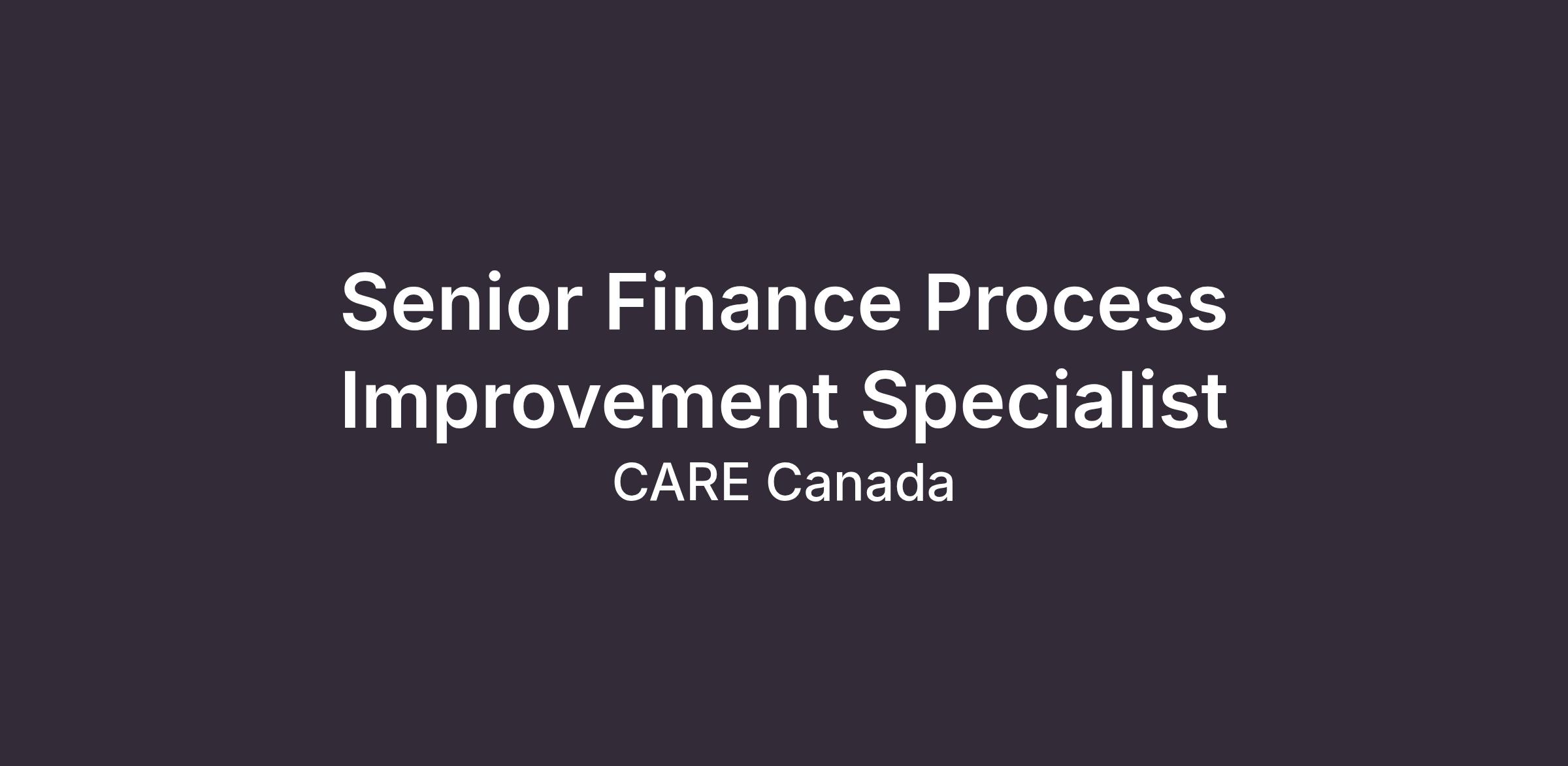 CARE Canada is looking for a Senior Finance Process Improvement Specialist (12-month contract)