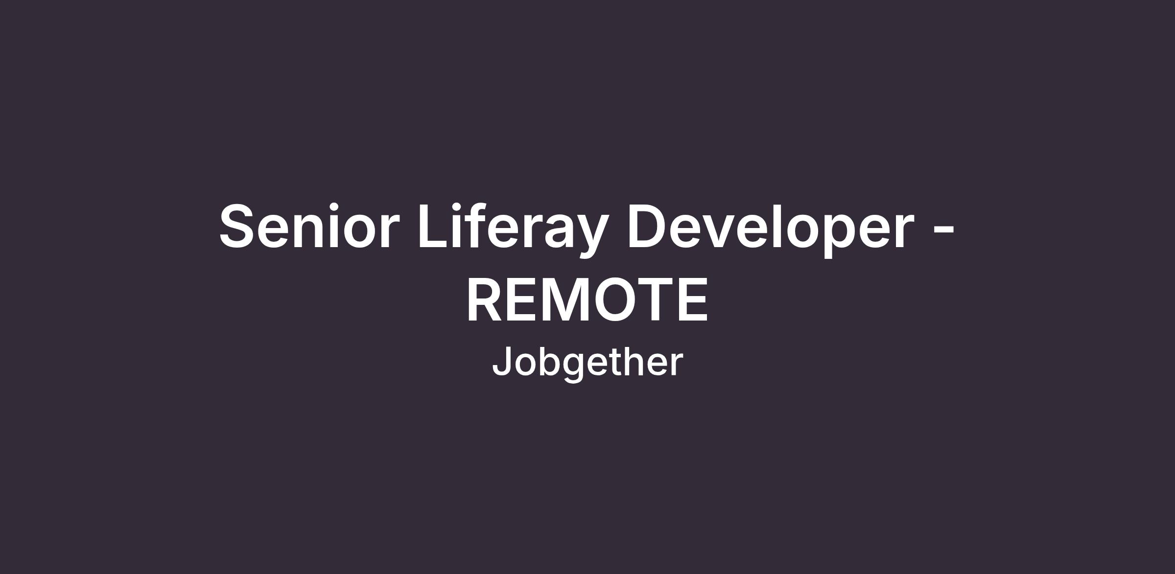 This position is posted by Jobgether on behalf of a partner company. We are currently looking for a Senior Liferay Developer - REMOTE. In this role, you will be a key player in developing and managing projects utilizing Liferay technology. Your expertise will contribute to creating innovative solutions, helping the team achieve its goals effectively. With a focus on quality and efficiency, you'll collaborate with other professionals to deliver exceptional services while enjoying the flexibility of a 100% remote work environment.