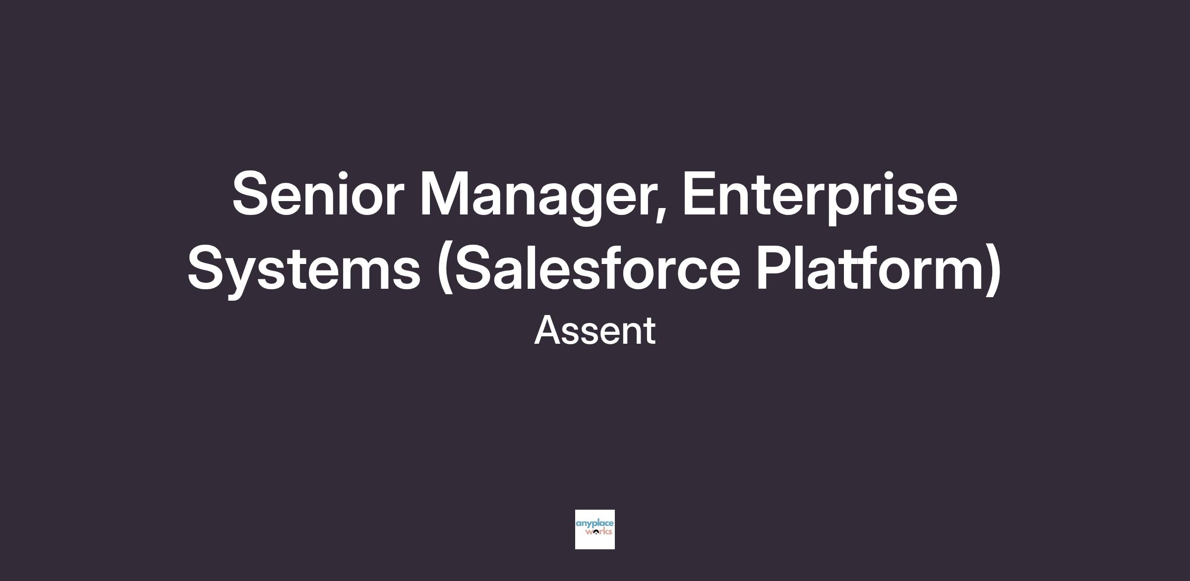 The Senior Manager, Enterprise Systems plays a critical leadership role in Assent’s technology organization. Reporting to the Sr. Director, Technology & Data Solutions, this role leads the team responsible for the strategy, governance, and optimization of the Salesforce platform (Sales, Service, and Experience Clouds)—a core system powering Assent’s commercial and customer success operations.