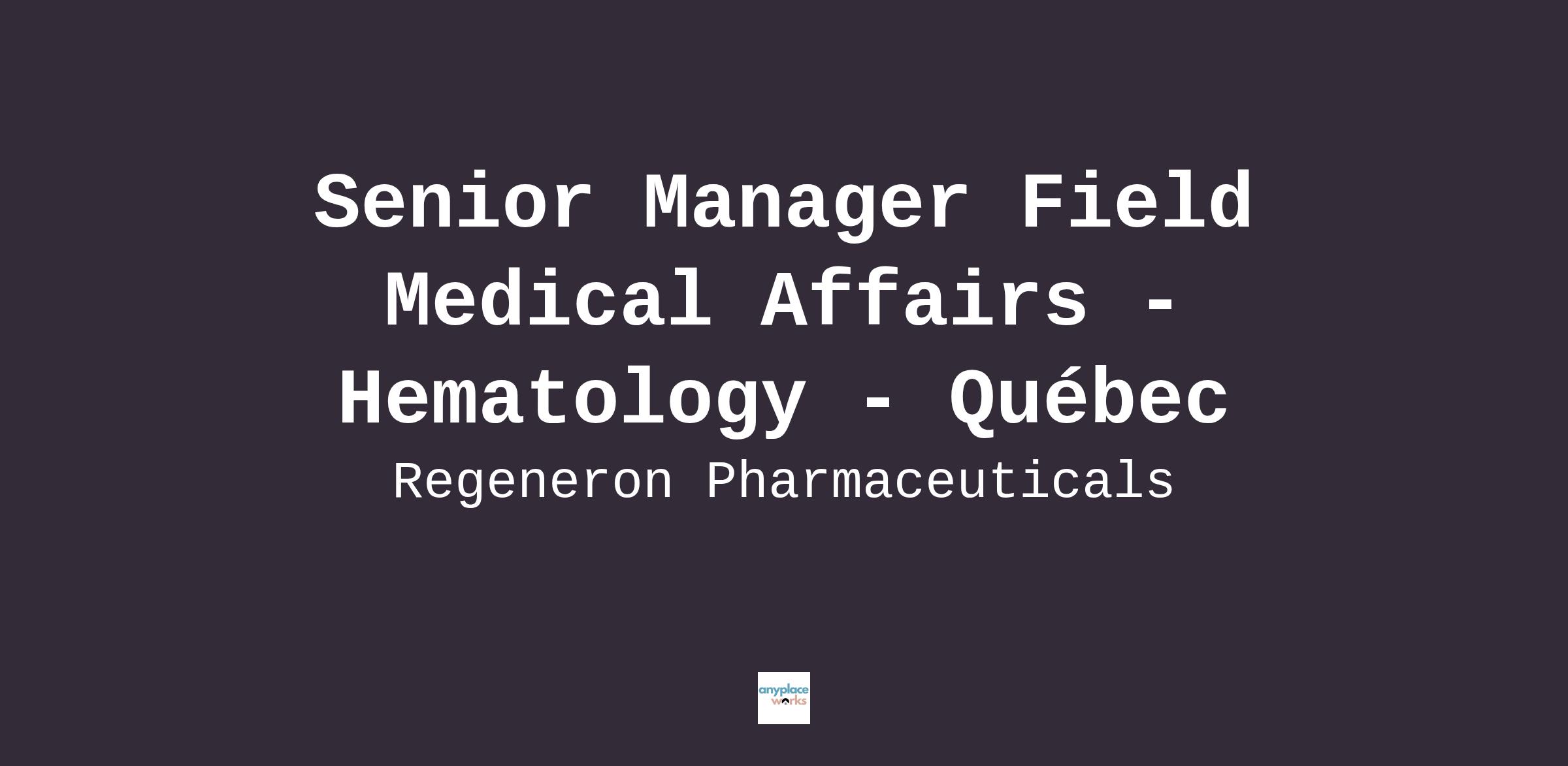 Senior Manager, Field Medical Affairs, Hematology – Québec