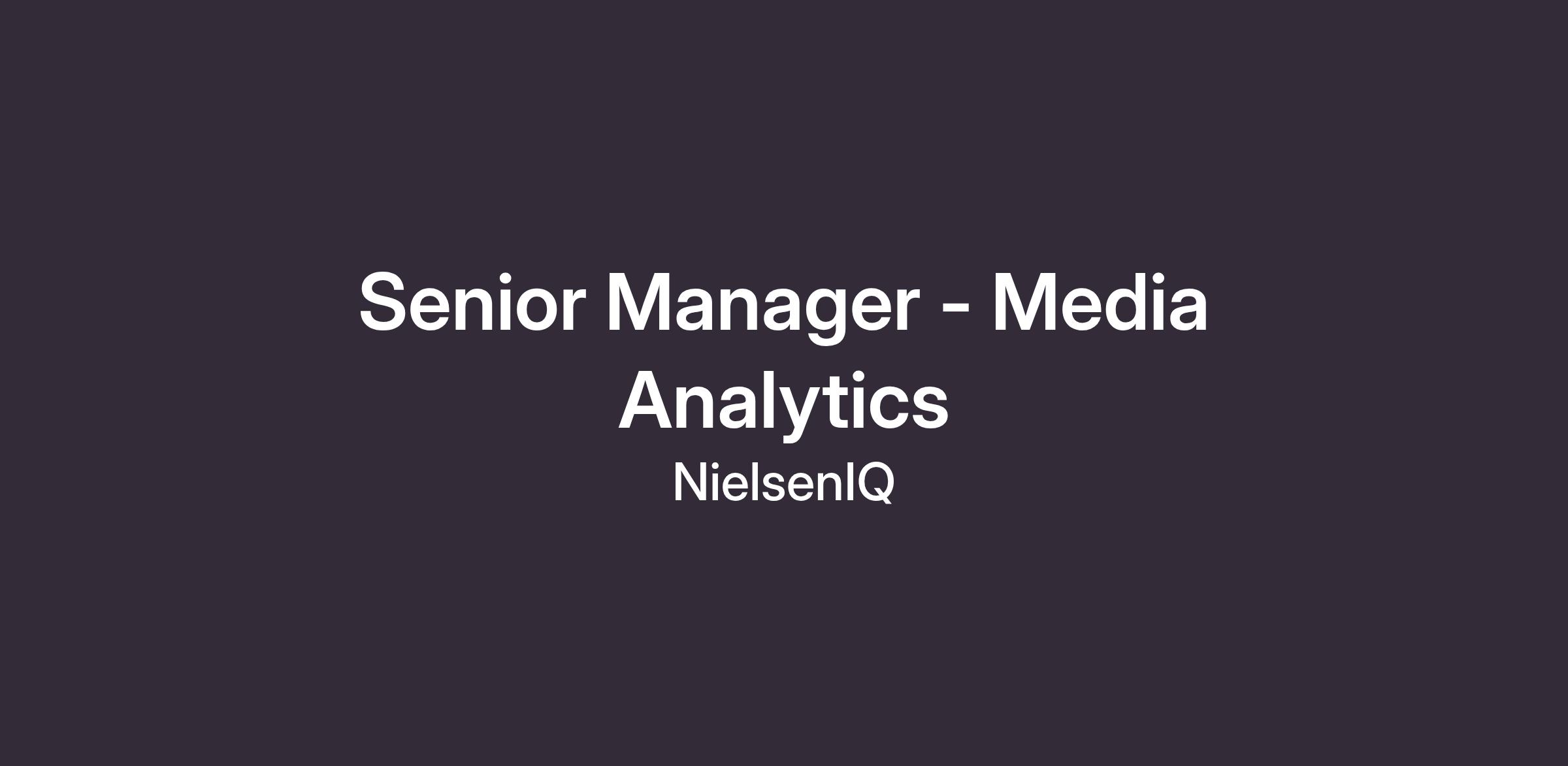 The primary role of the Senior Manager - Media Analytics is to have ultimate responsibility for the development and implementation of analytics solutions for NIQ client organizations. This includes coordinating resources, managing stakeholders, delivering insights, recommendations and tools related to media effectiveness to our clients.