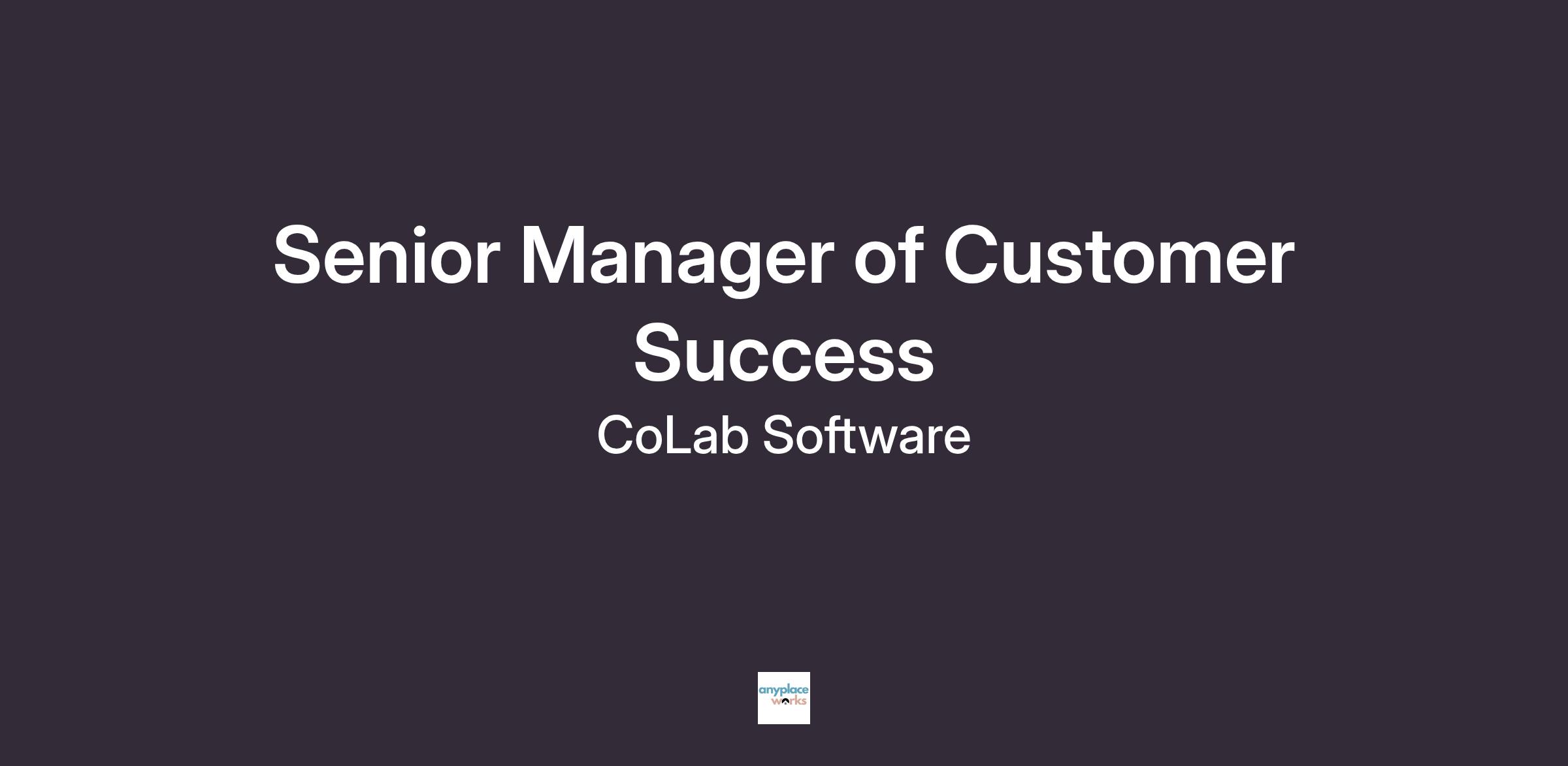 You will report to the Director of Customer Success. As CoLab scales, this role offers a clear path to senior leadership within our growing global Customer Success organization.