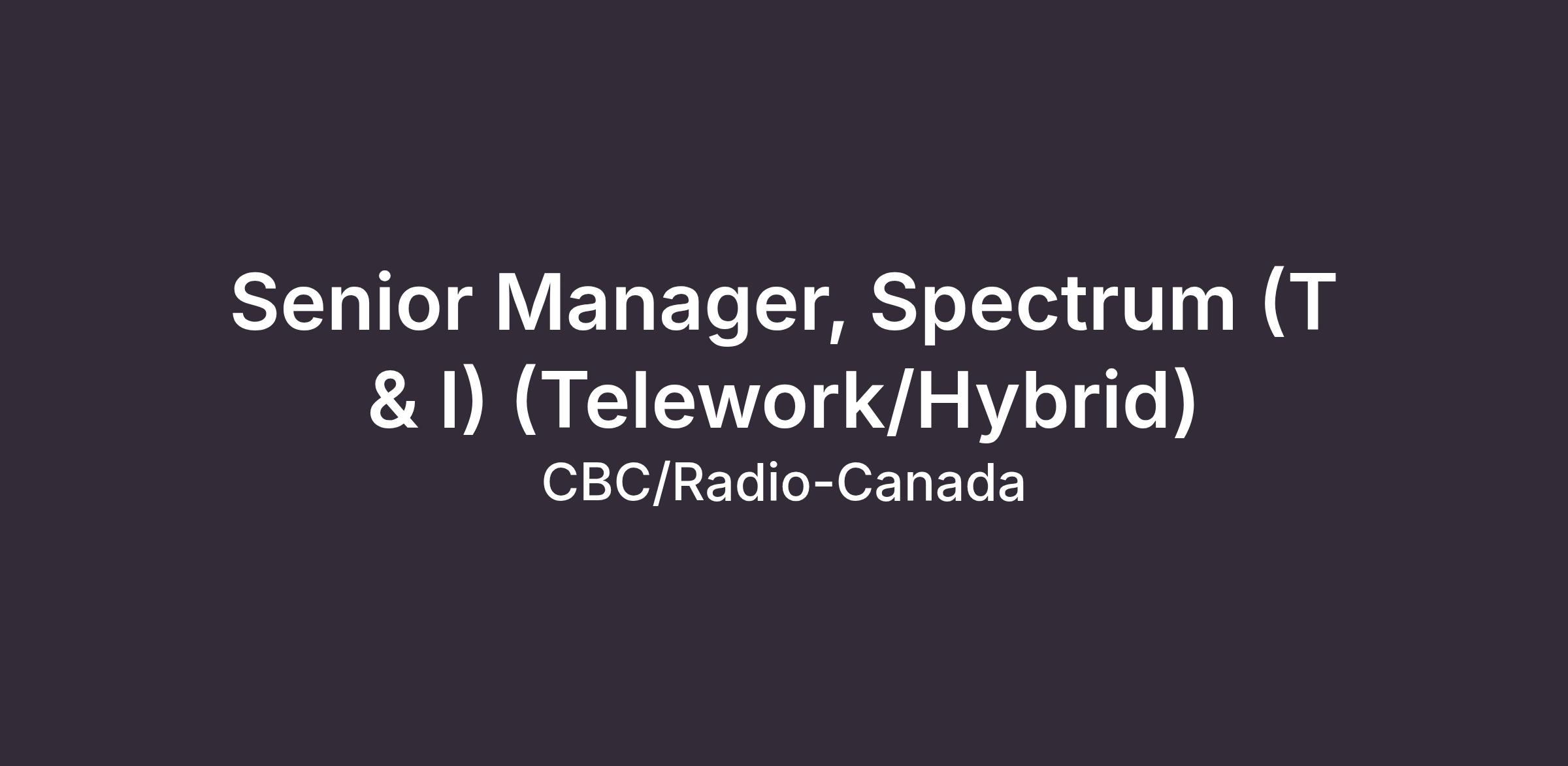 Senior Manager, Spectrum (T & I) (Telework/Hybrid)Status of Employment: