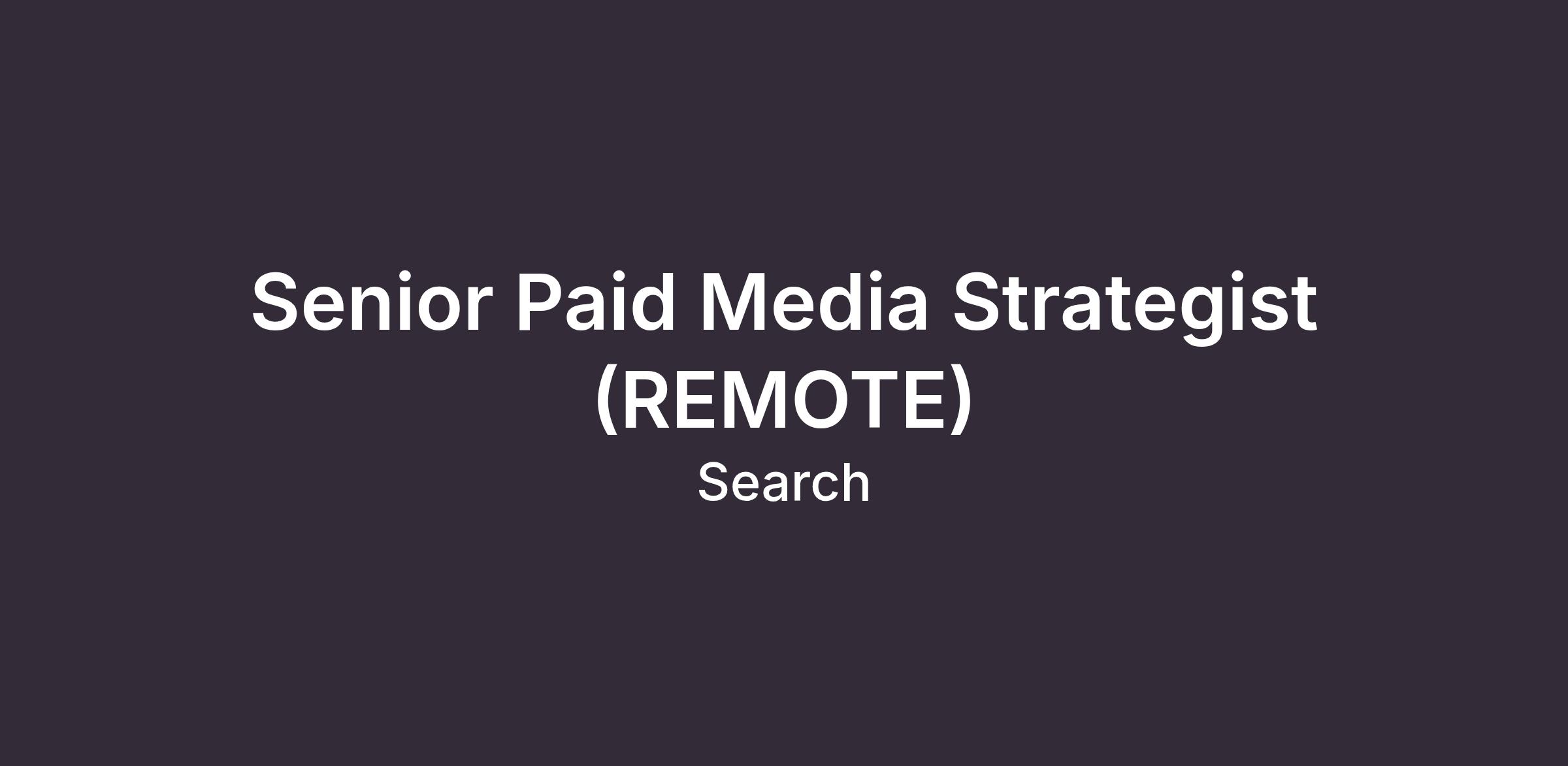 Senior Paid Media Strategist (Remote)