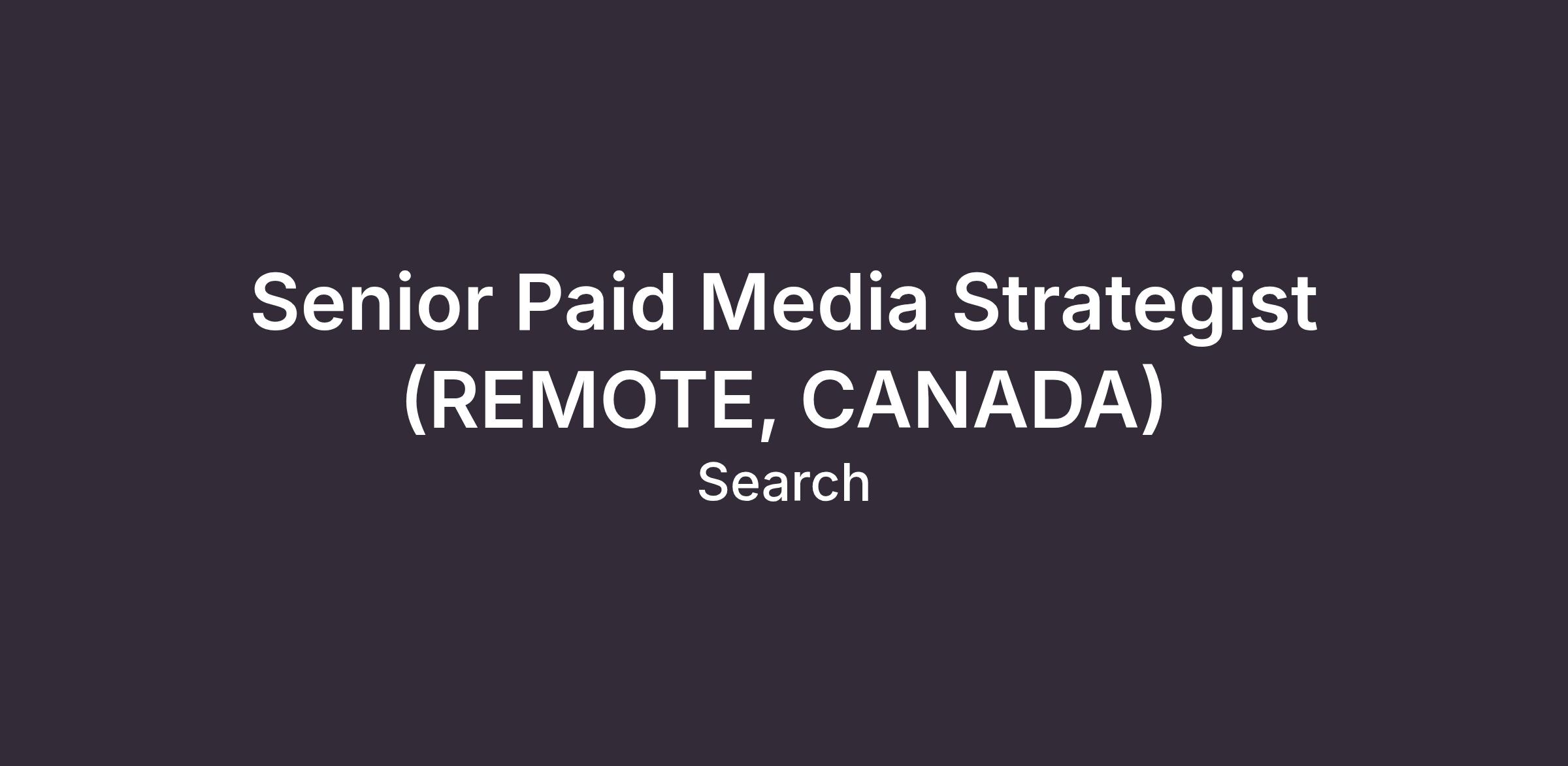 Senior Paid Media Strategist (Remote)