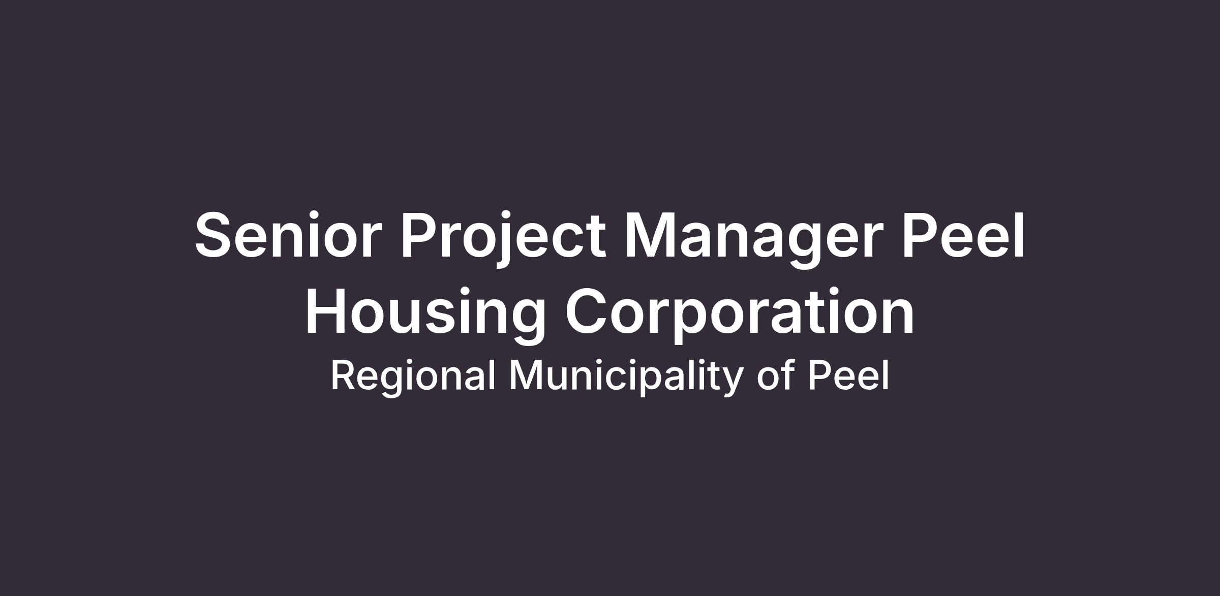 Senior Project Manager, Peel Housing Corporation