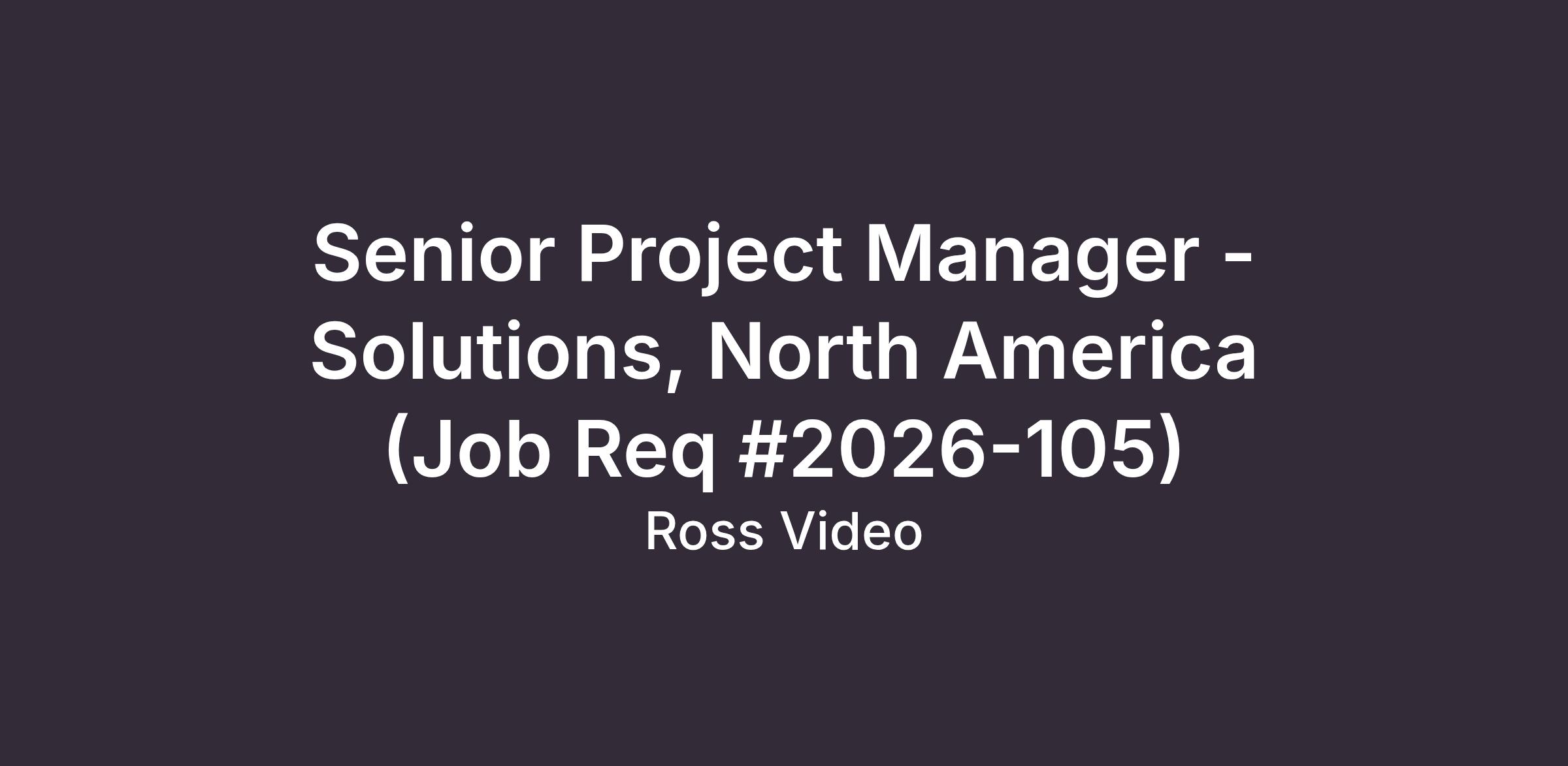 As a Senior Project Manager, you will lead and oversee the support, planning and execution of client projects within Ross Video's North American portfolio. This role involves implementing high-level project strategies and ensuring that project deliverables align with Ross Video’s standards of excellence and customer experience. The Senior Project Manager will collaborate with internal departments such as Sales, Technical Support, and Global Services to optimize project workflows, resource allocation, and client satisfaction.