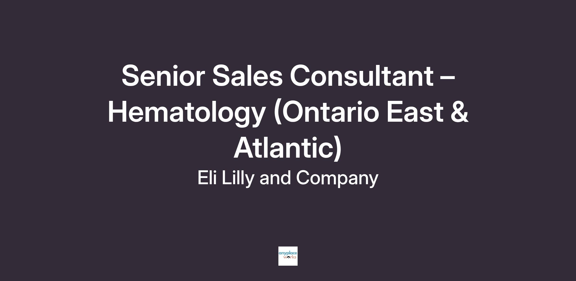Senior Sales Consultant – Hematology (Ontario East & Atlantic)