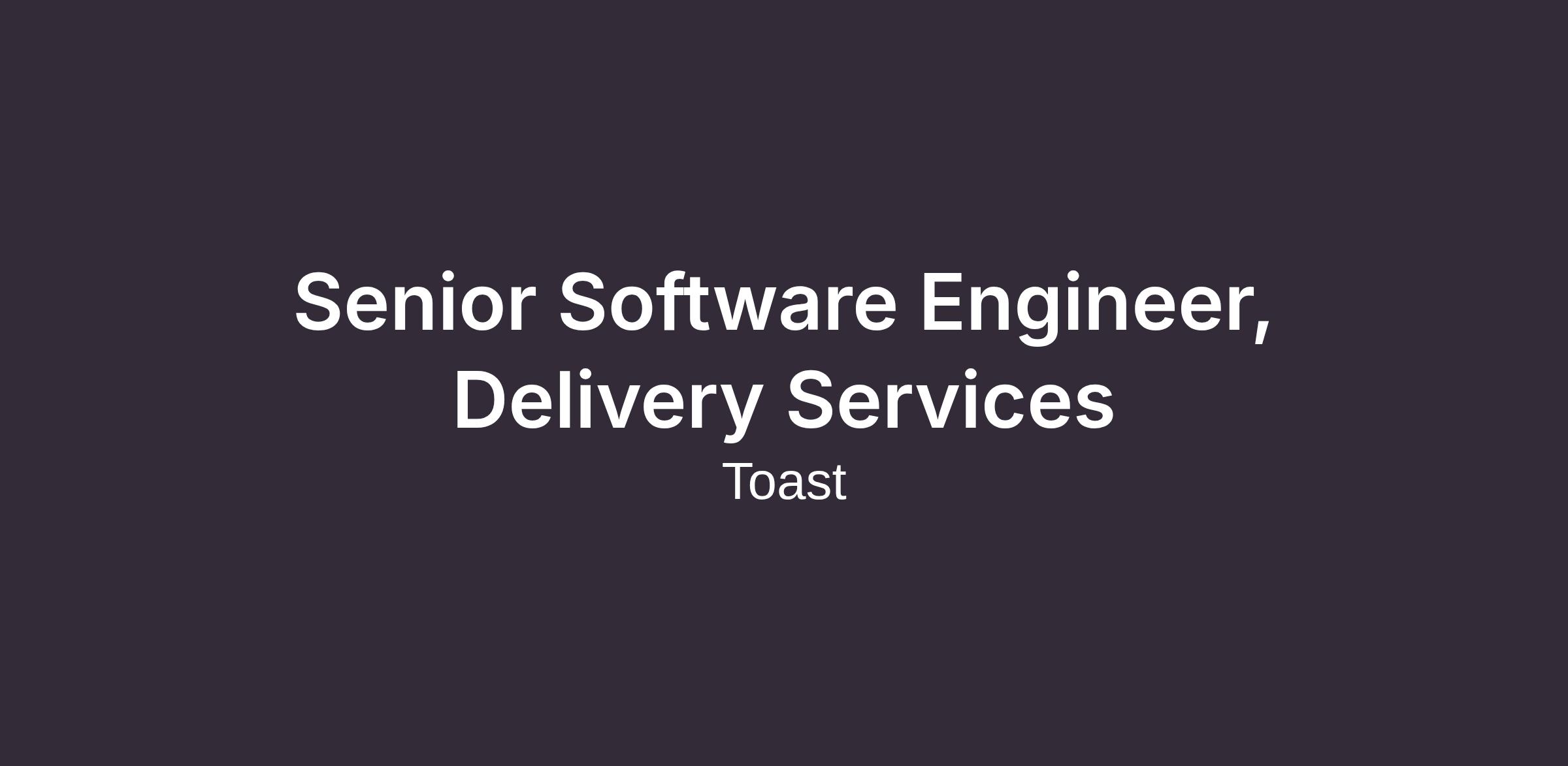 The Toast Delivery Services team enables restaurants to build thriving, profitable first party delivery channels while growing Toast's consumer business. As a Senior Software Engineer, you'll play a pivotal role in enabling seamless integrations with third-party delivery providers, helping restaurants offer direct delivery through Toast’s Online Ordering channels. This is an exciting opportunity to contribute to a high-impact service focused on optimizing experiences for our restaurants and the customers who order from them.