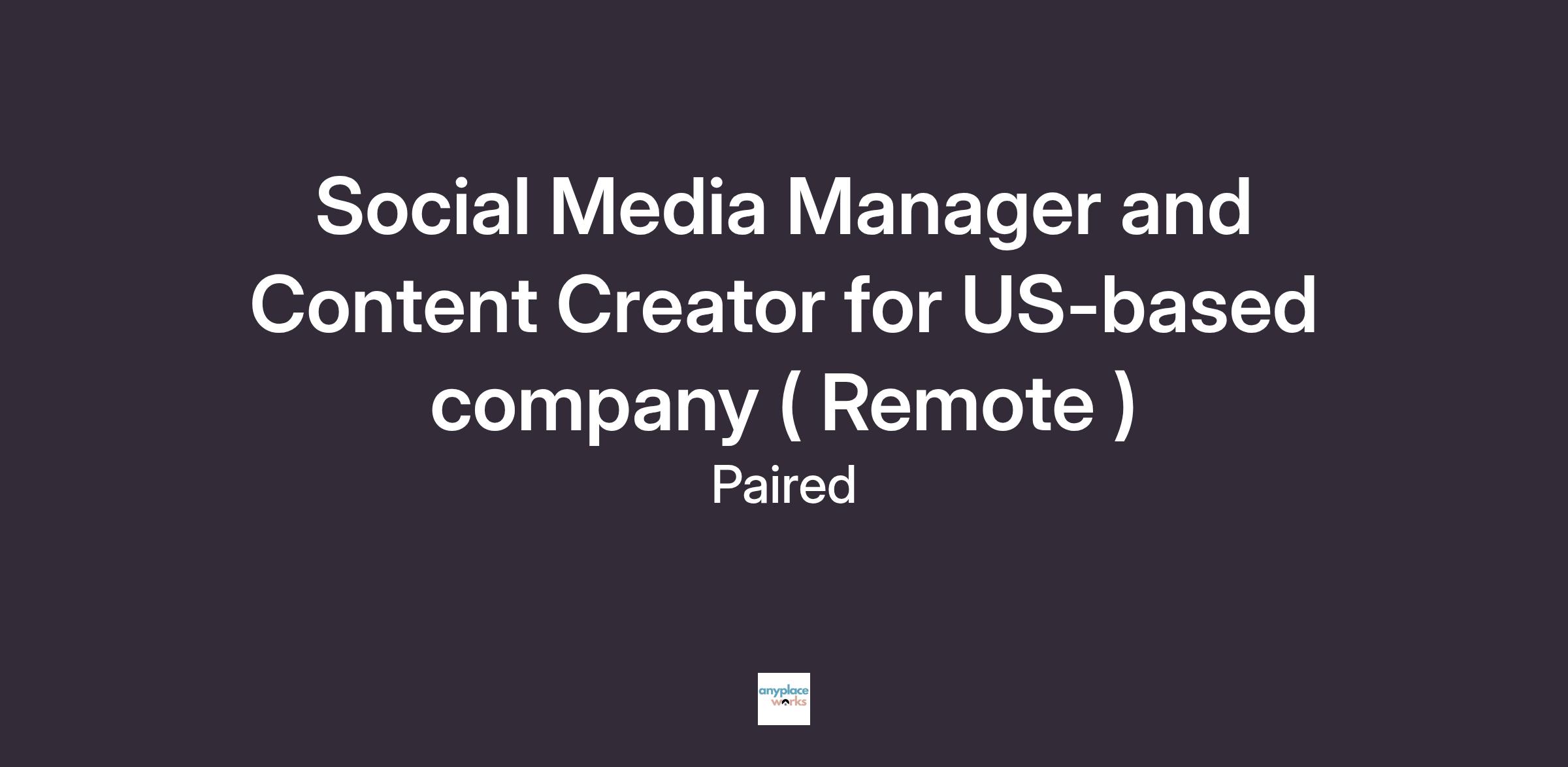 DescriptionPaired is a global staffing and recruiting agency that specializes in connecting talented professionals with innovative companies. Our theme is simple: we help you find great jobs, regardless of your location. We are currently seeking a motivated and creative Social Media Manager and Content Creator to join a dynamic US-based company on a remote basis.