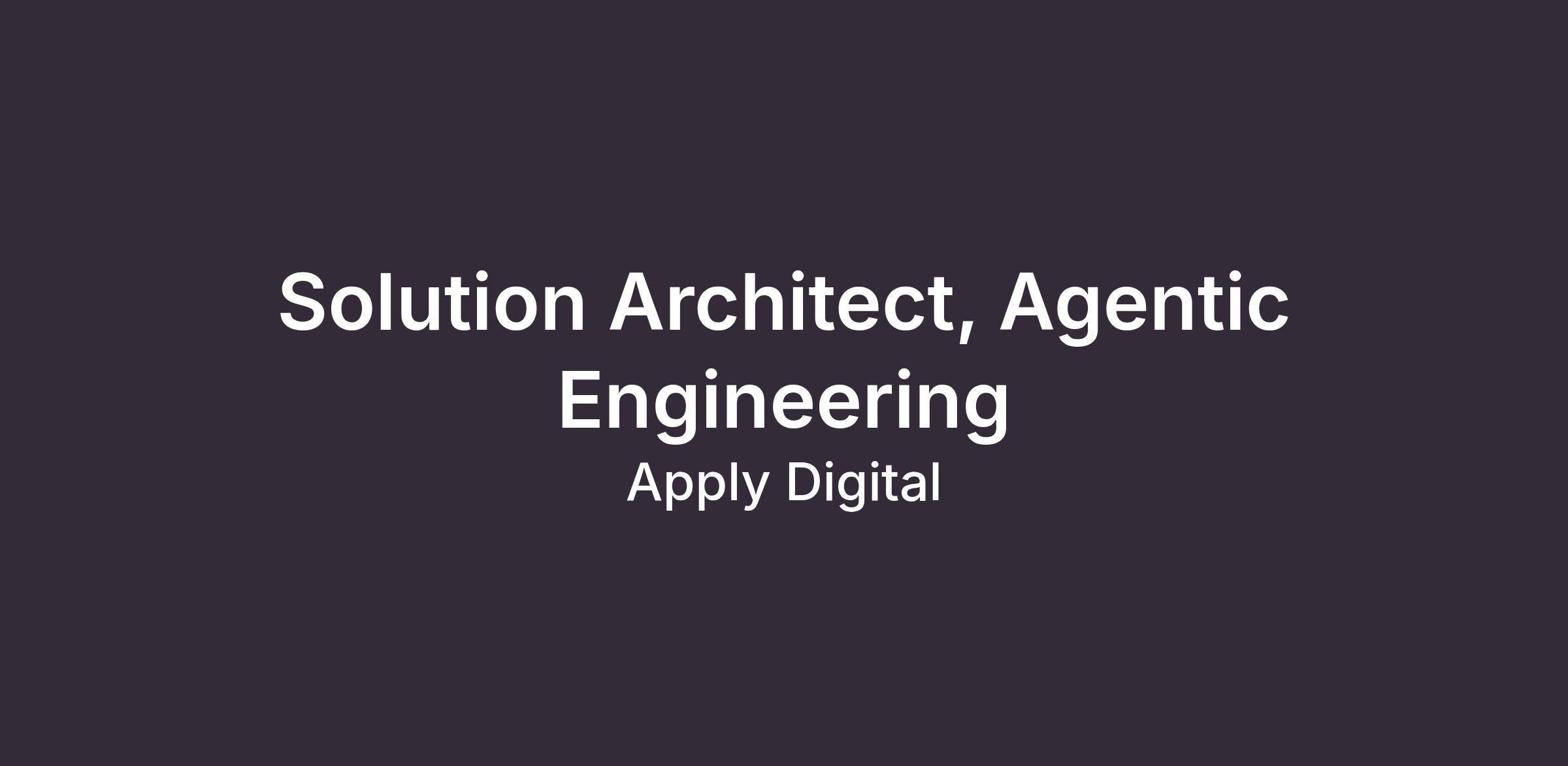 Apply Digital is seeking a Solution Architect to provide senior technical leadership across our platforms and engineering capabilities, with a strong focus on Agentic Engineering, AI-powered experiences, modern software architecture, and scalable delivery practices.