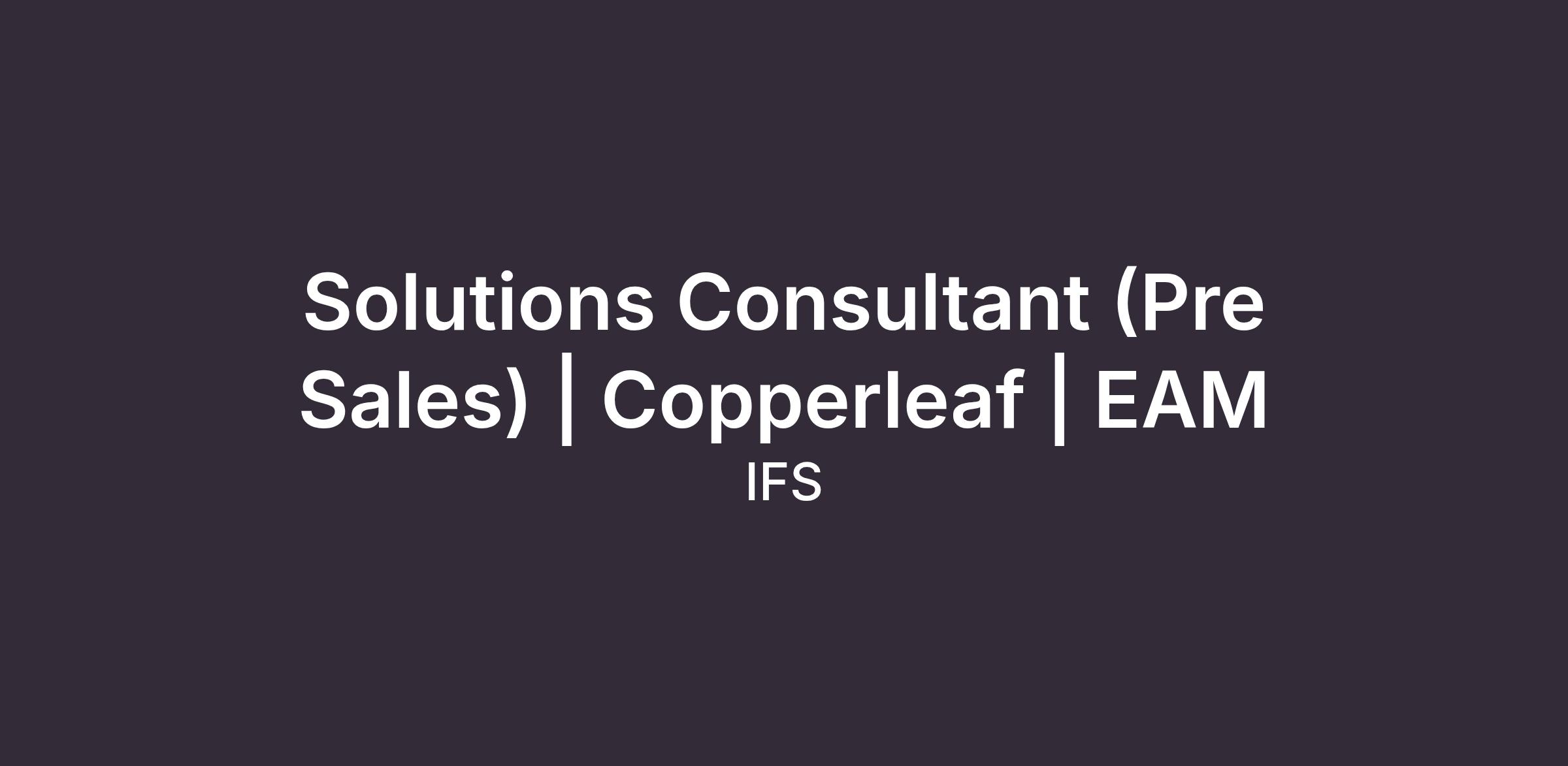 You will need to be comfortable having close dialogue with external stakeholders, including C-level, technical management, and architectural teams to position IFS as the partner of choice for the adoption and enablement of IFS Copperleaf solutions in our core industry verticals.