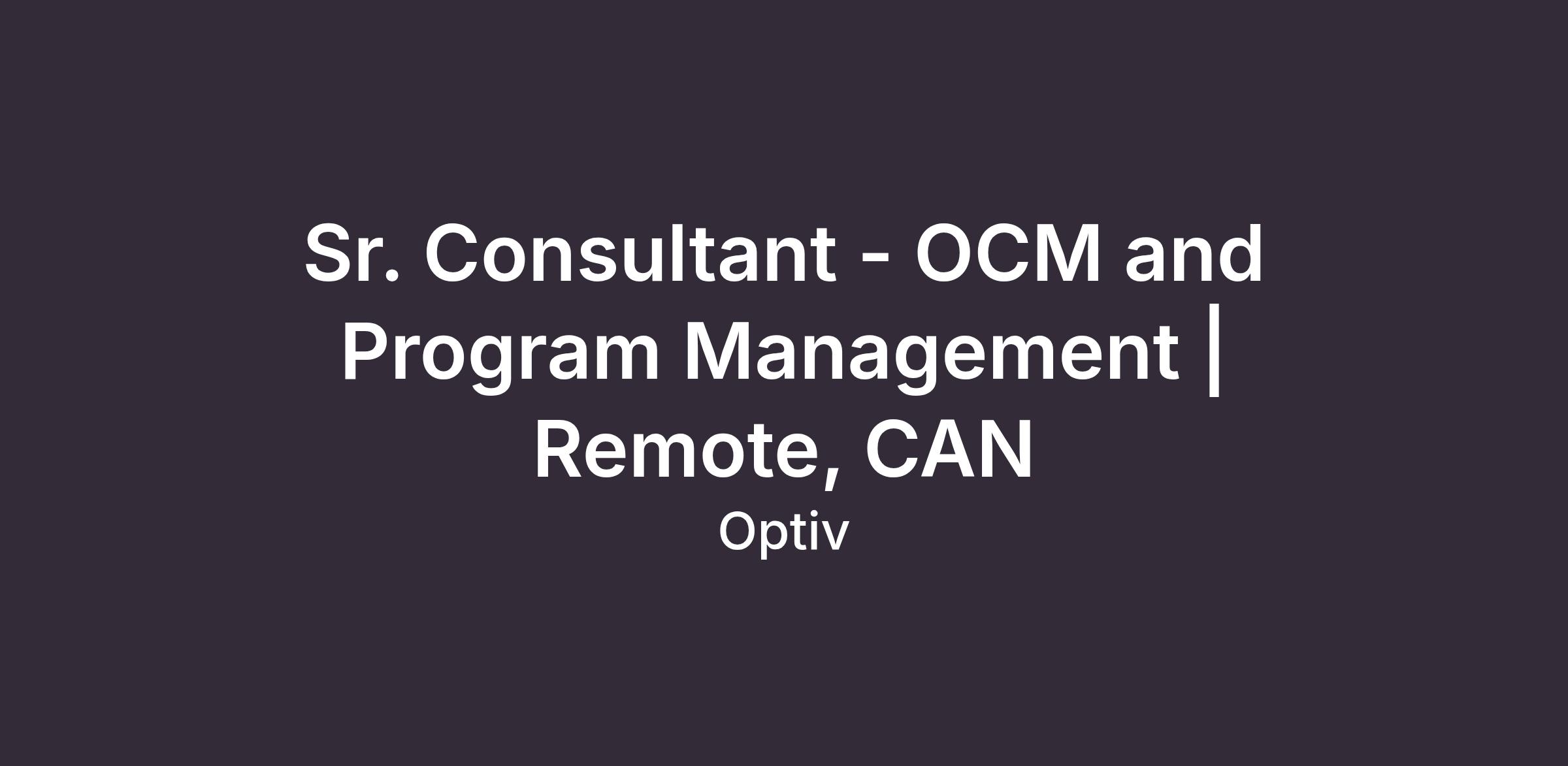 Advises clients on OCM and PM leading practices, lessons learned, and trends while designing and integrating tailored OCM and PM solutions into broader client activities as a part of a team-based consulting delivery model