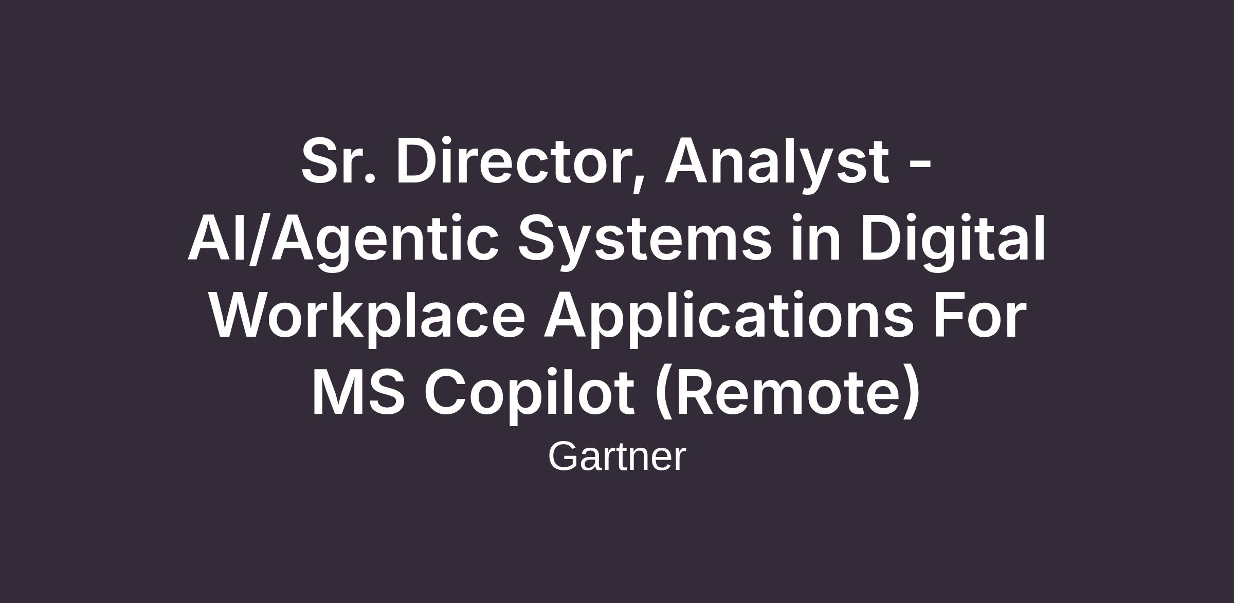 Your role involves leading collaborative research focused on major enterprise AI assistant and agentic vendors (e.g., Microsoft, Google, OpenAI, Amazon, Anthropic) and their products to deliver actionable guidance regarding their product capabilities, platform maturity, security controls, and integration approaches to scale AI across the workforce.