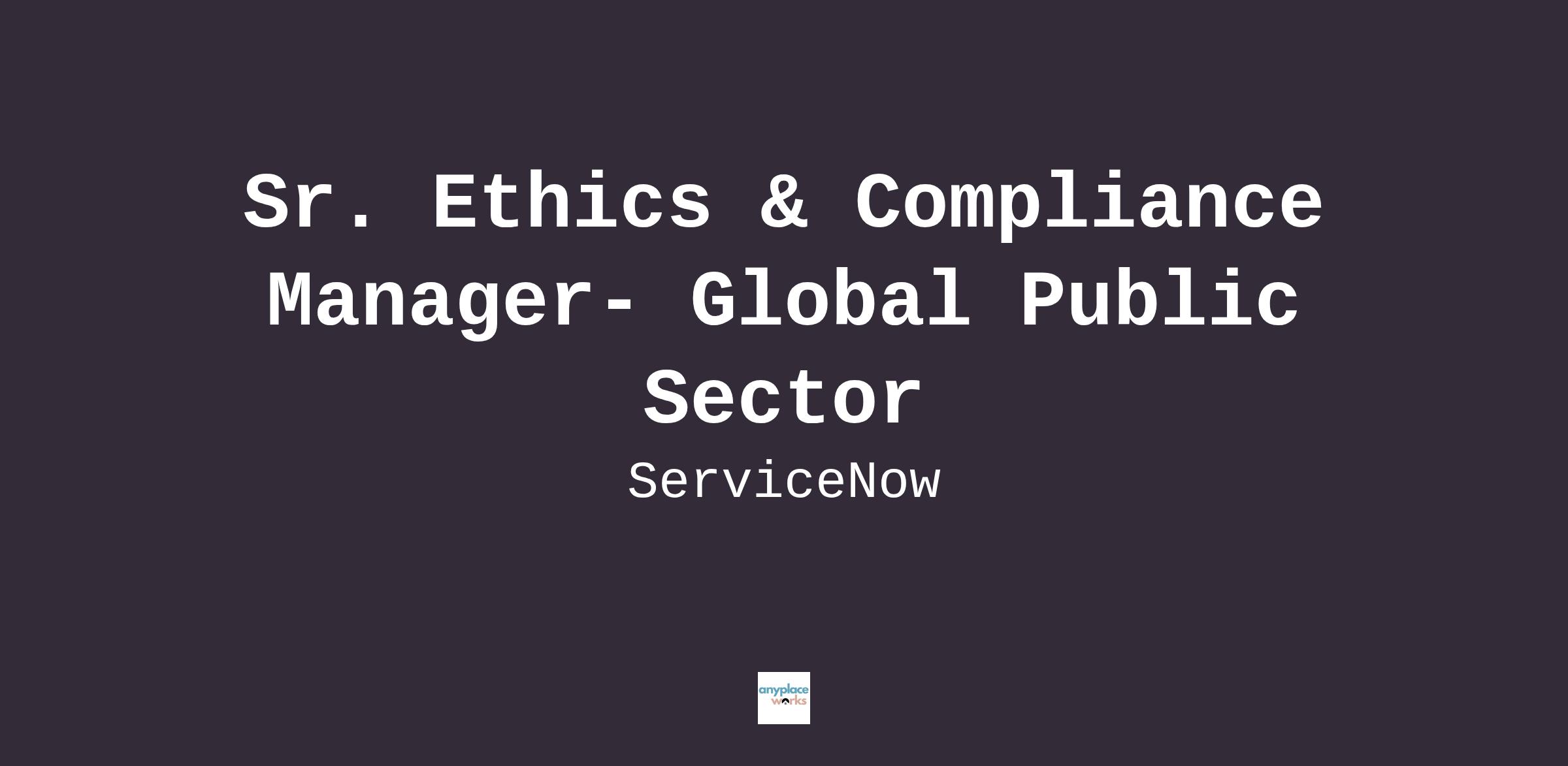 Sr. Ethics & Compliance Manager- Global Public Sector