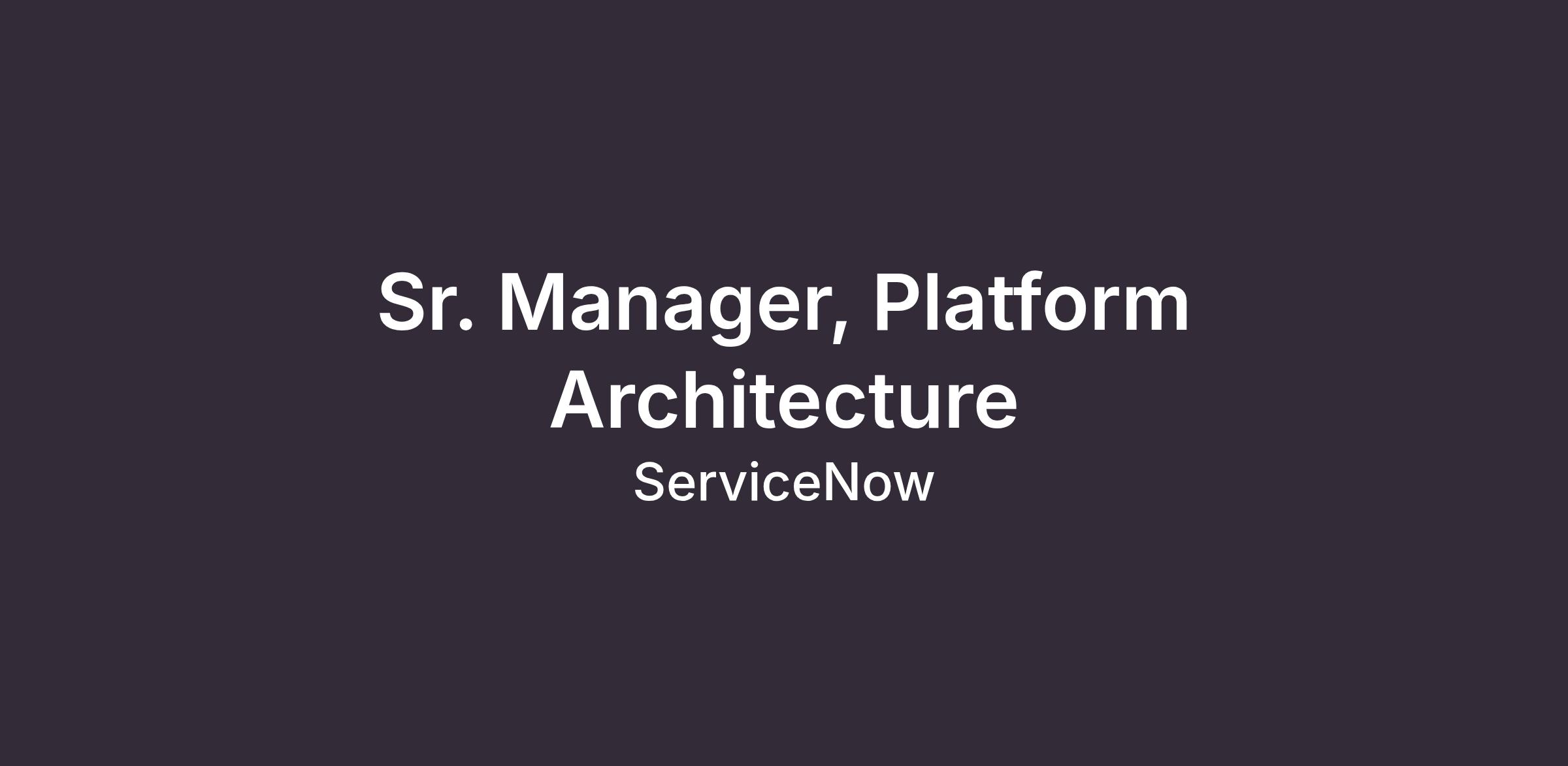 Sr. Manager, Platform Architecture