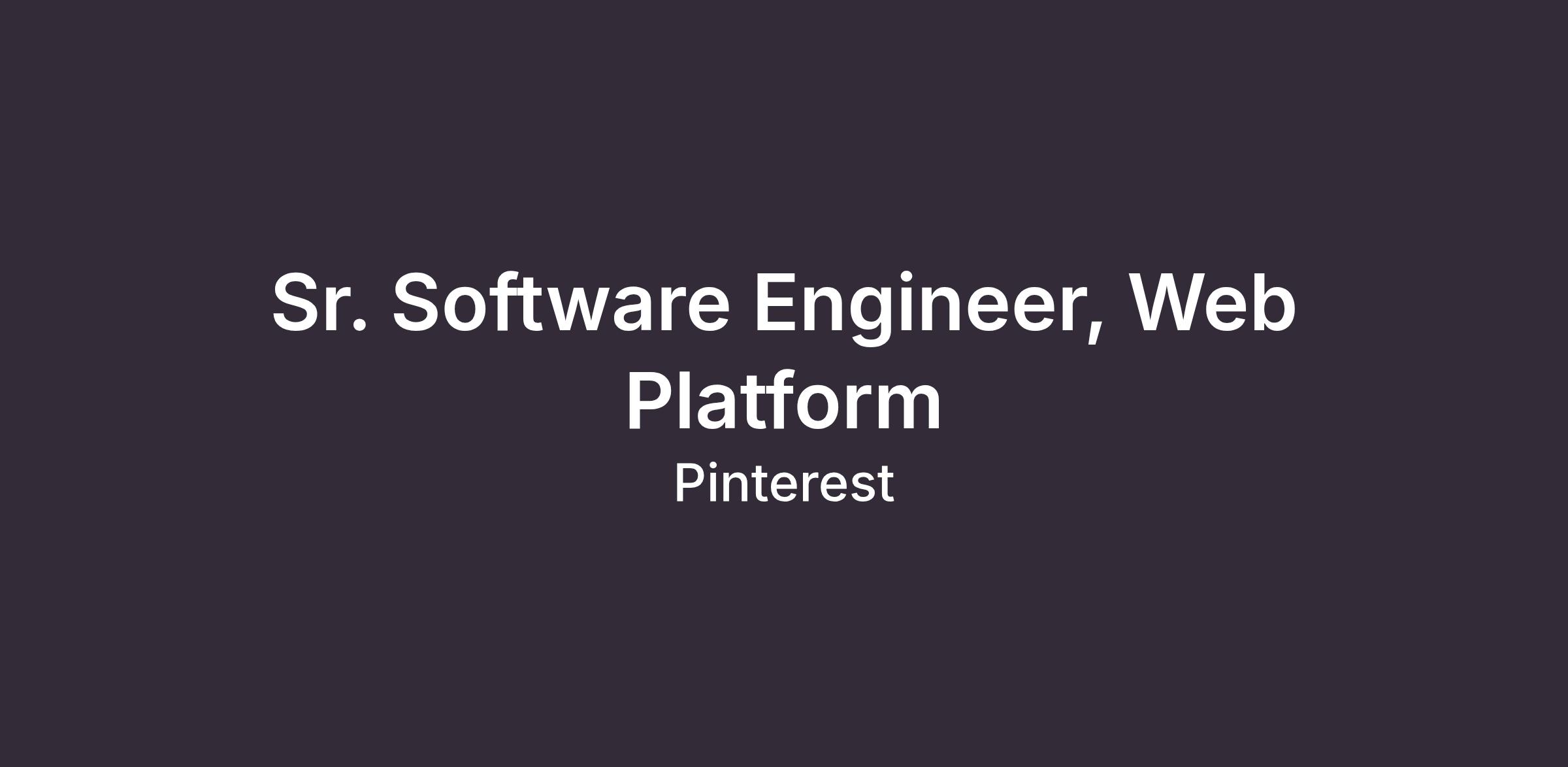 As a Senior Software Engineer on the Web Platform Team, you will drive initiatives that empower developers to build modern, world-class web experiences for Pinners with high productivity, performance, and quality. We're looking for someone who is passionate about front-end, has a growth mindset, and isn't afraid to voice their opinion on how we can improve. You'll find creative solutions to thought-provoking problems, and because we value the kind of courageous thinking required for big bets and smart risks to pay off, you'll create and drive new initiatives from inception through technical design, implementation, and release.