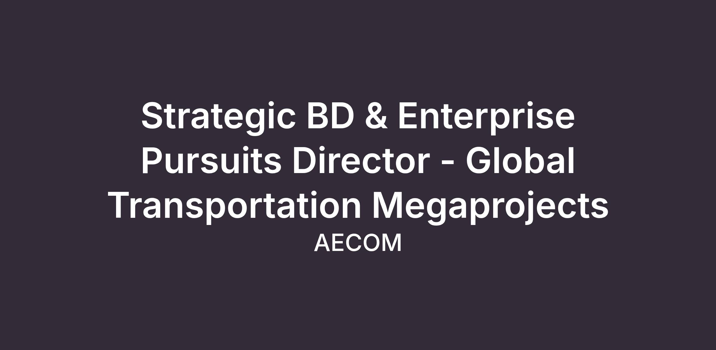 AECOM Canada is seeking a Strategic Business Development & Enterprise Pursuits Director to lead major pursuits, strengthen client relationships, and drive strategic growth across Canada.