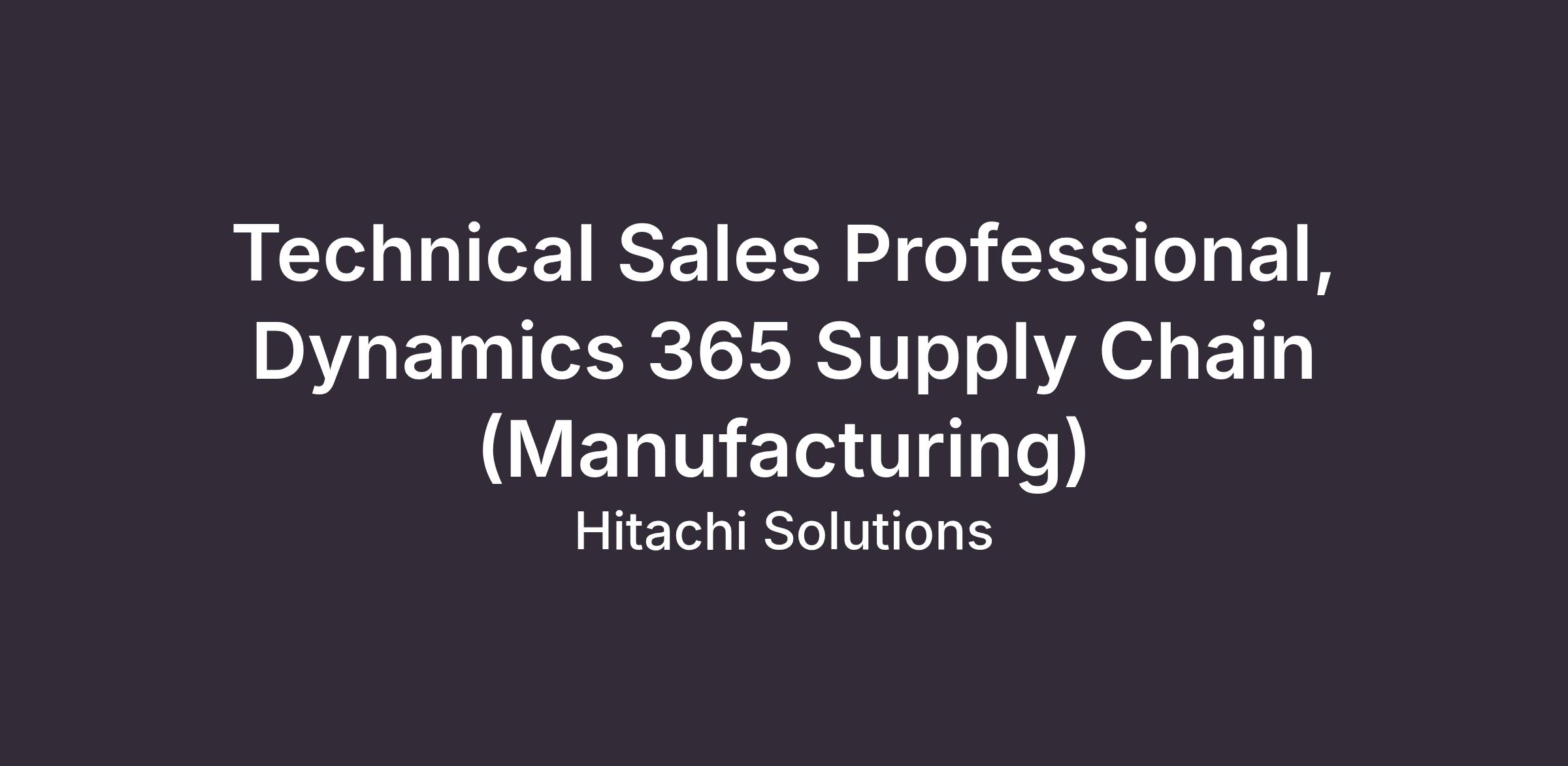 Hitachi Solutions is looking for a high-impact Technical Sales Professional (TSP) to drive growth for Microsoft Dynamics 365 Supply Chain Management, with a focus on discrete and/or process manufacturing.