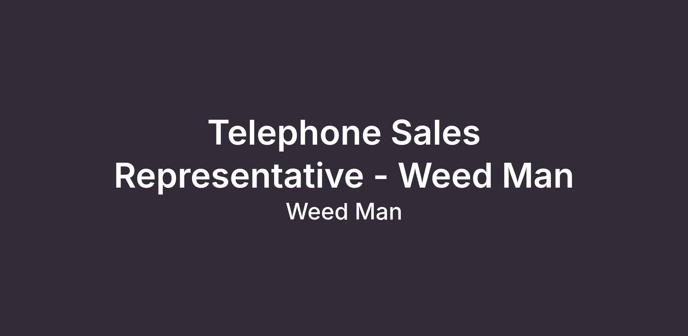 At Weed Man, we don’t just grow grass...we grow people! We are currently looking for a remote sales rep (experience an asset but not necessary) who is an enthusiastic individual with excellent communication & people skills. Ready to grow with us? Apply to become a Telephone Sales Representative today!