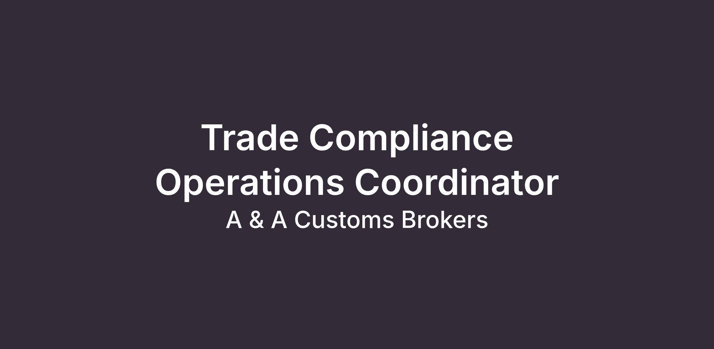 Job Title: Trade Compliance Operations Coordinator