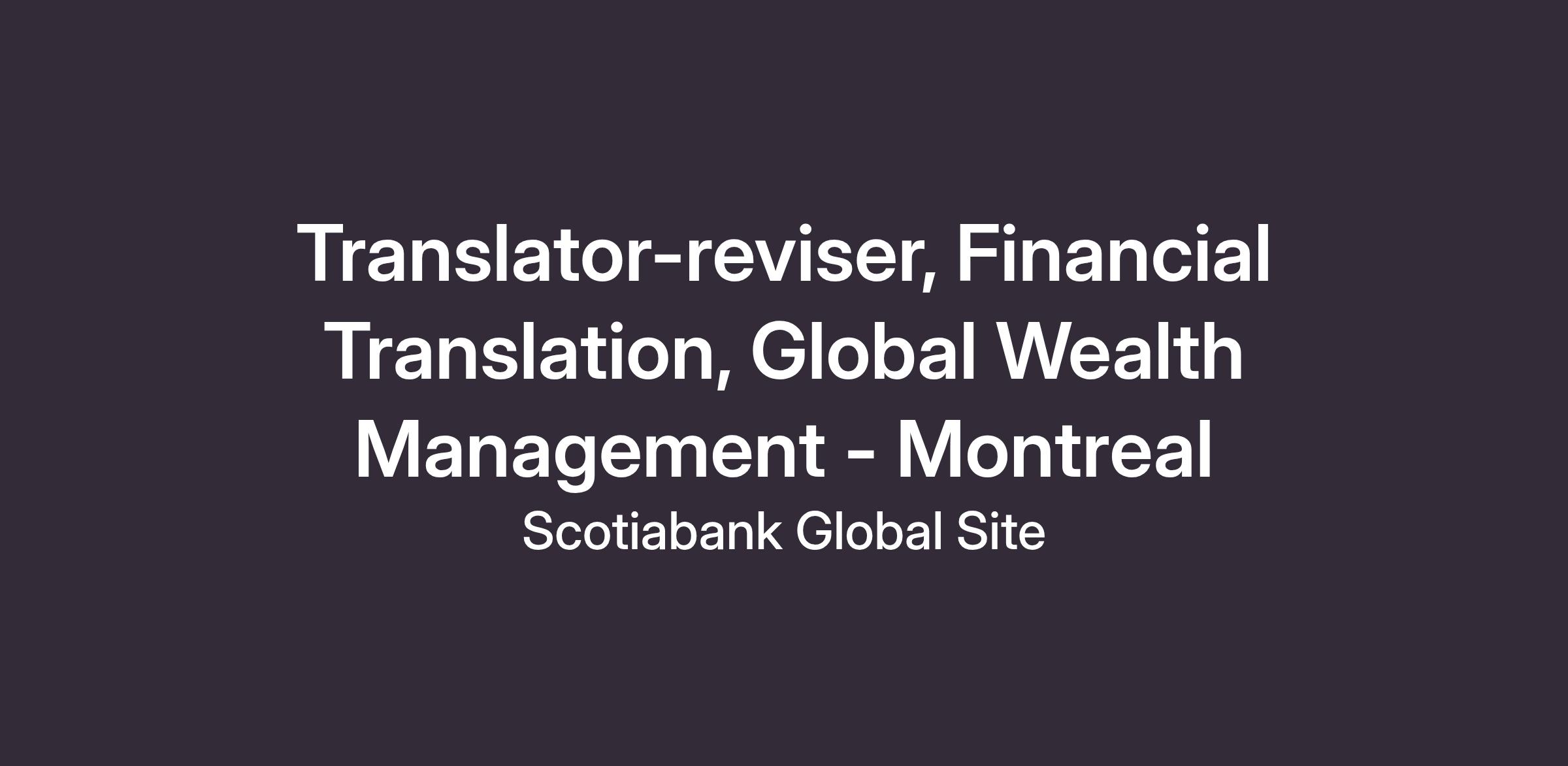 As a key member of our Global Wealth Management Linguistic Services team, you will play a vital role in the overall success of our organization, particularly Scotia Global Asset Management. As a translator-reviser, you will champion a customer-focused culture, translate and adapt high-visibility client-facing financial documents and internal communications, and ensure that translated materials align with brand standards through rigorous quality assurance. You’ll actively contribute to large-scale projects, leveraging your expertise to drive impactful outcomes for our clients and the organization.