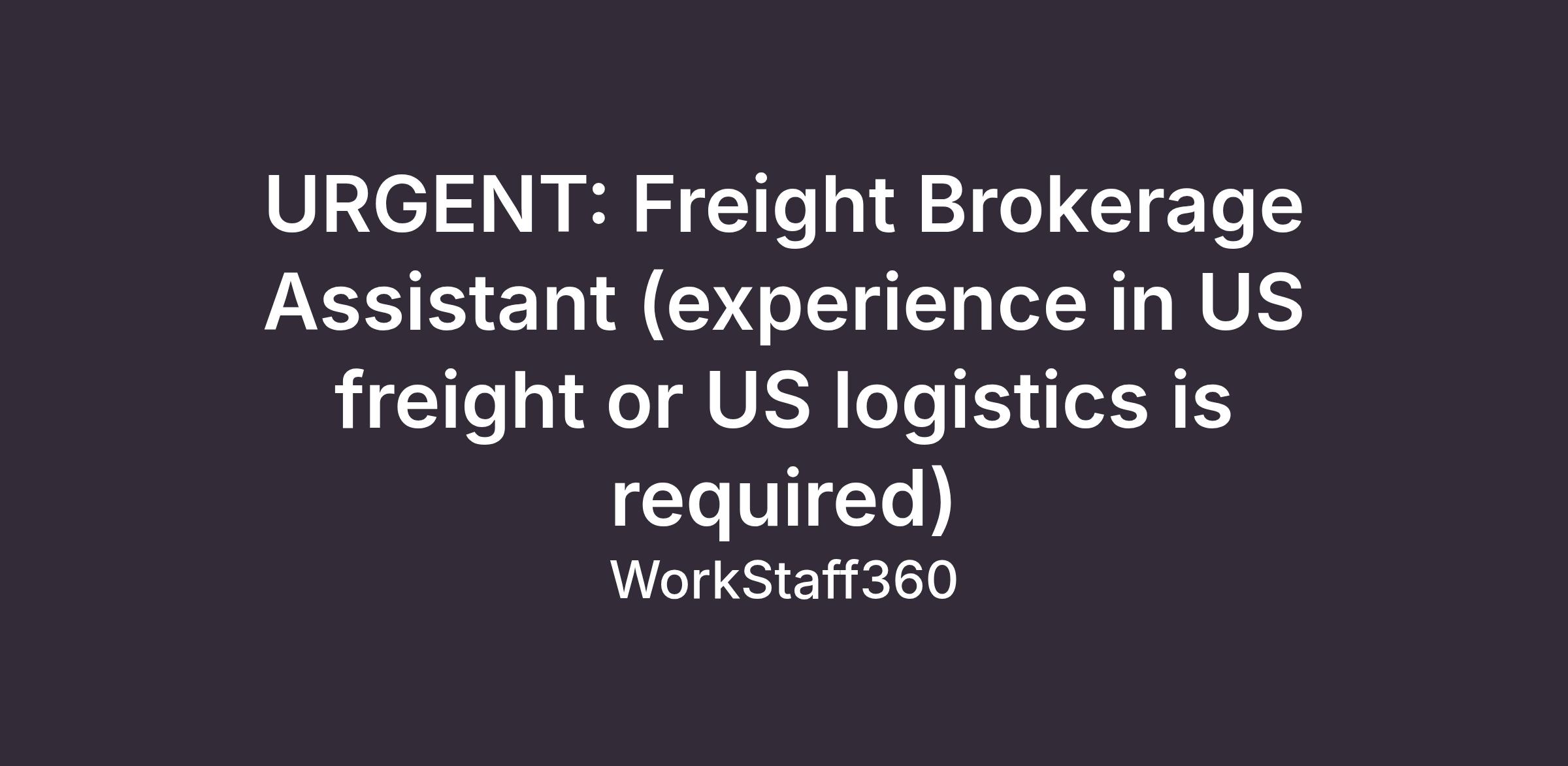 URGENT: Freight Brokerage Assistant (experience in US freight or US logistics is required)