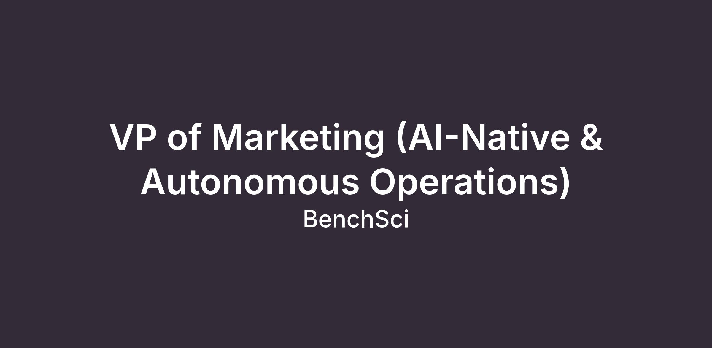 BenchSci is looking for a VP of Marketing to redefine what a marketing department looks like in the age of generative intelligence. You will own BenchSci’s brand, demand, and market position in biopharma R&D — and build the agentic infrastructure to power it, from scratch.