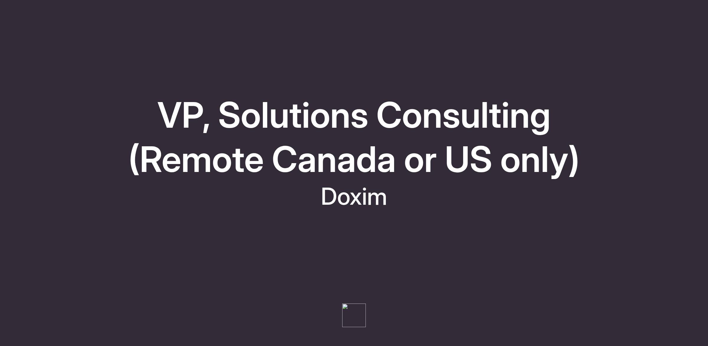 VP, Solutions Consulting (Remote Canada or US only)