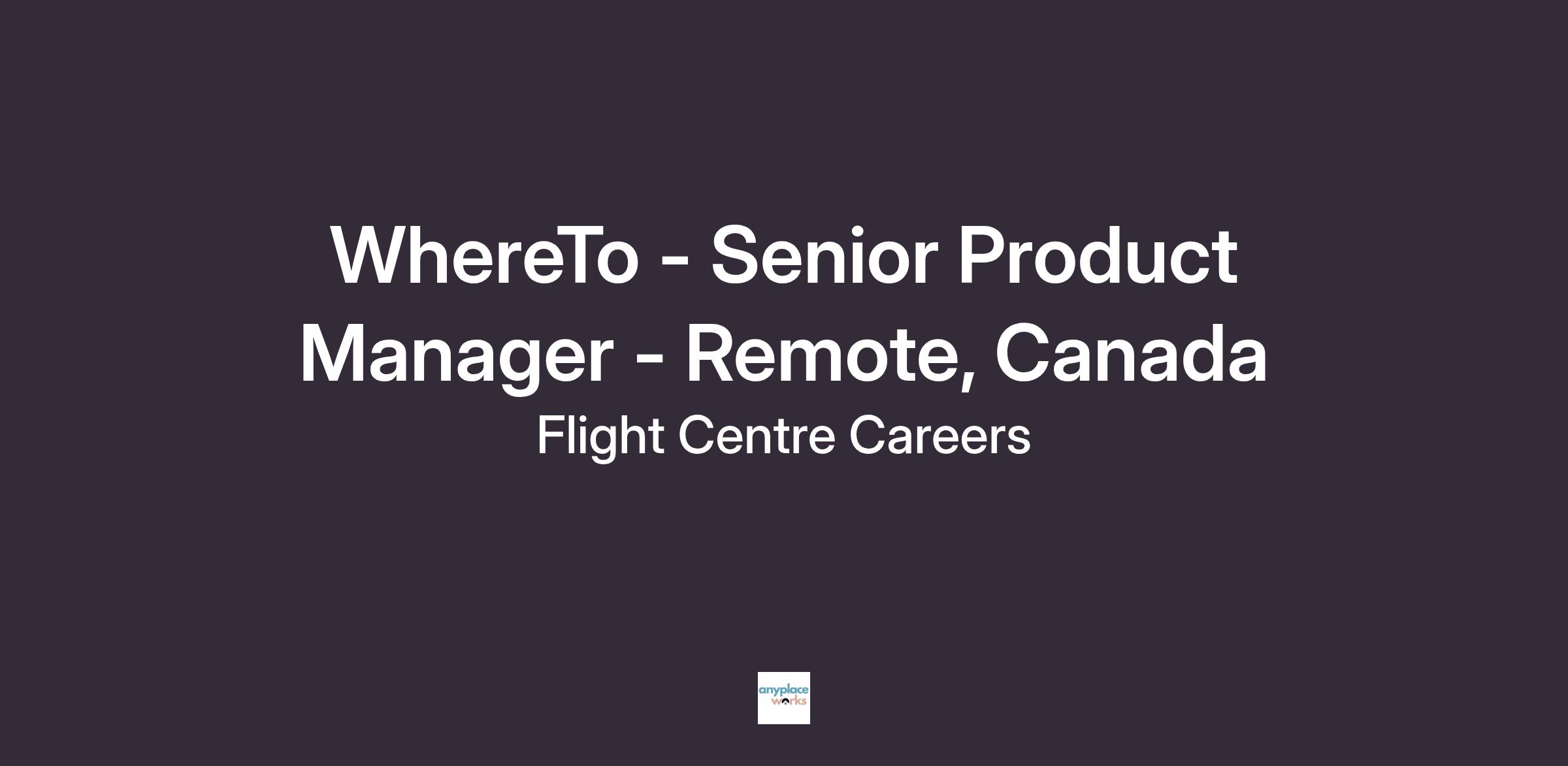 WhereTo (now part of Flight Centre Travel Group) is looking for a passionate, motivated, and skilled Product Manager to join our growing Product, Engineering, and Design teams. This is an exciting opportunity to be an integral part of the team leading the return to travel and work with some of the largest and most powerful travel programs in the world. You also must be a team player who is willing and able to mentor others and contribute to our culture of operational excellence.